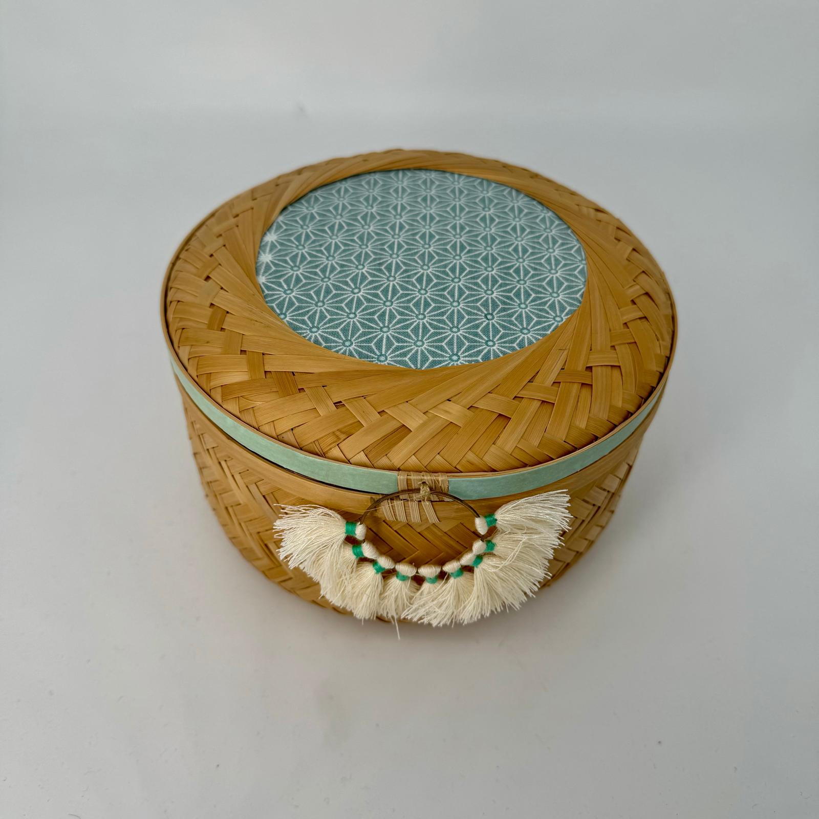 This cylindrical bamboo basket combines natural texture with modern style, elevated by a unique & charming tassel. Just the right size for essential oils or wrapped snacks, it keeps your essentials organized while adding a refined touch to your space.
