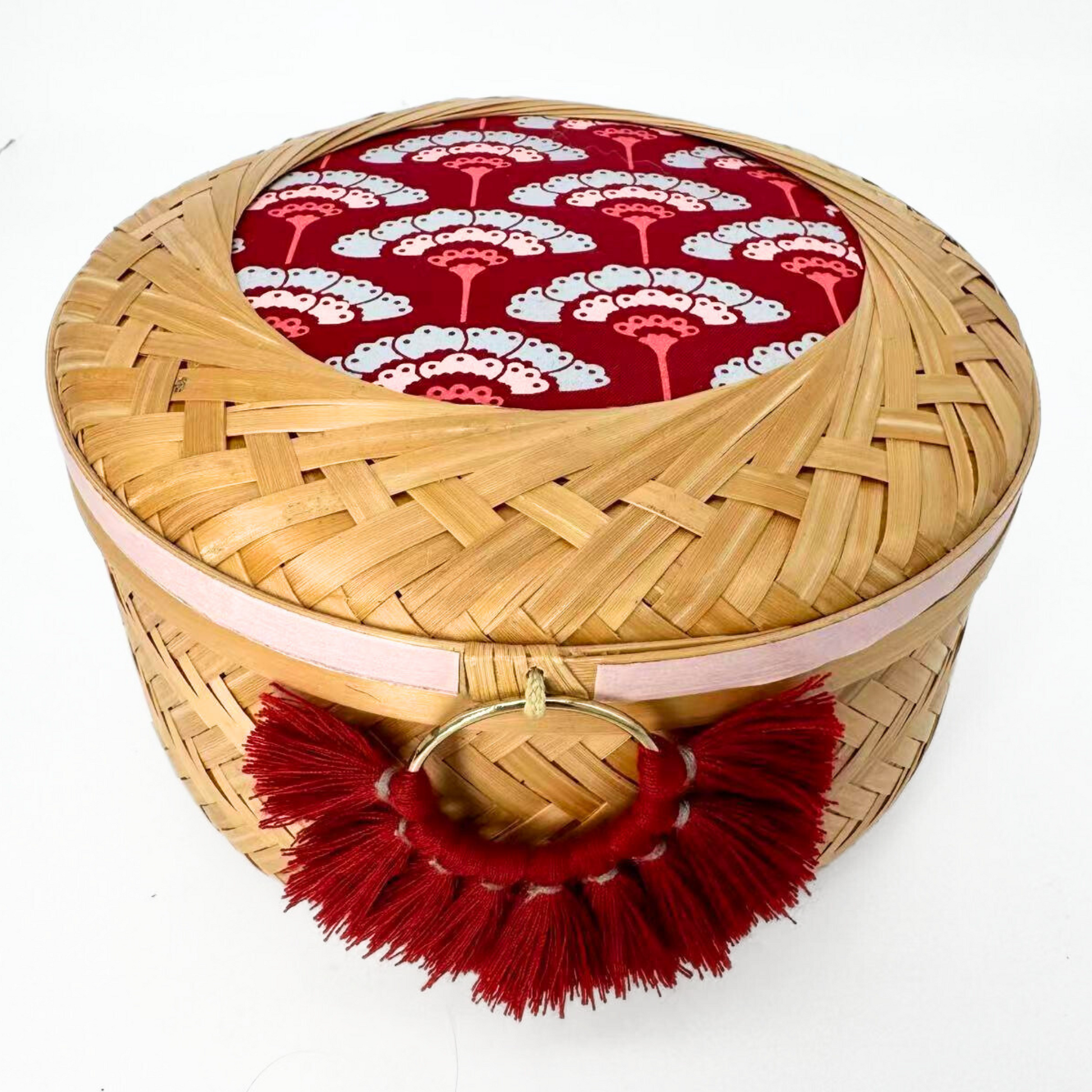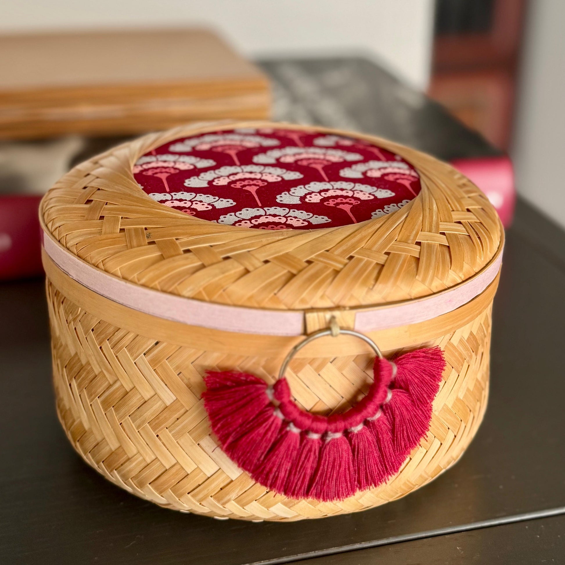 This cylindrical bamboo basket combines natural texture with modern style, elevated by a unique & charming tassel. Just the right size for essential oils or wrapped snacks, it keeps your essentials organized while adding a refined touch to your space.