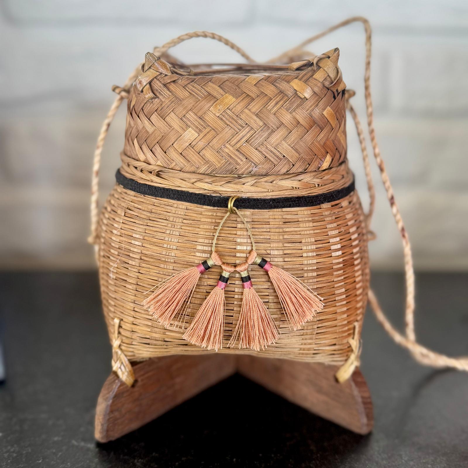 This compact reinterpretation of the traditional sticky rice basket features a graceful new shape and a unique, handcrafted tassel. Ideal for holding everyday essentials or presenting a favorite candle. Aurora is hand-finished to bring both character and heritage to any setting.