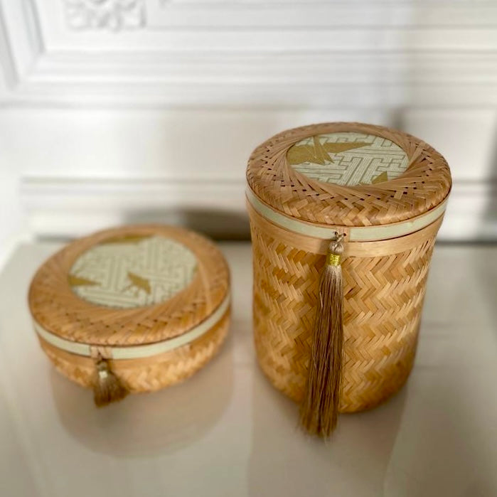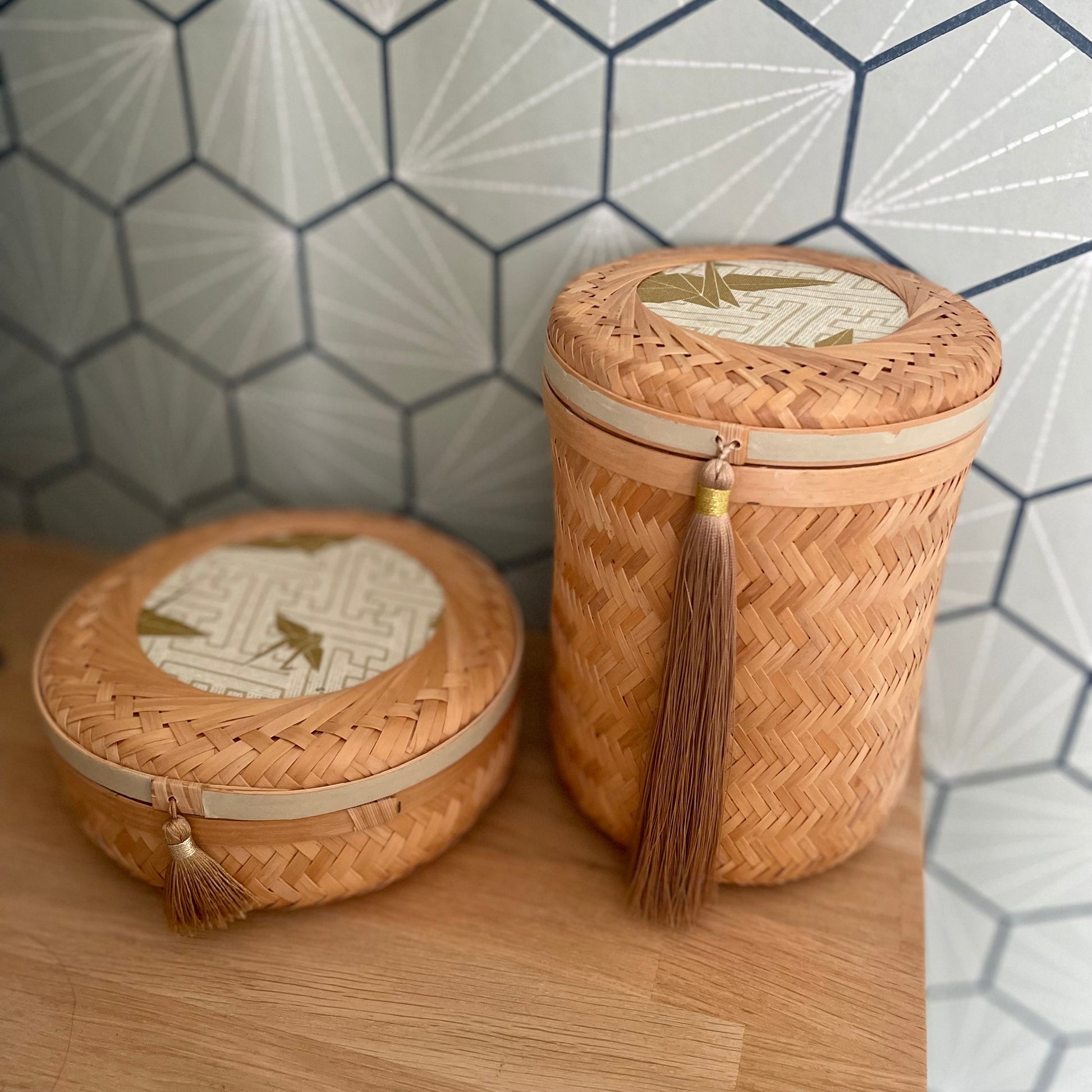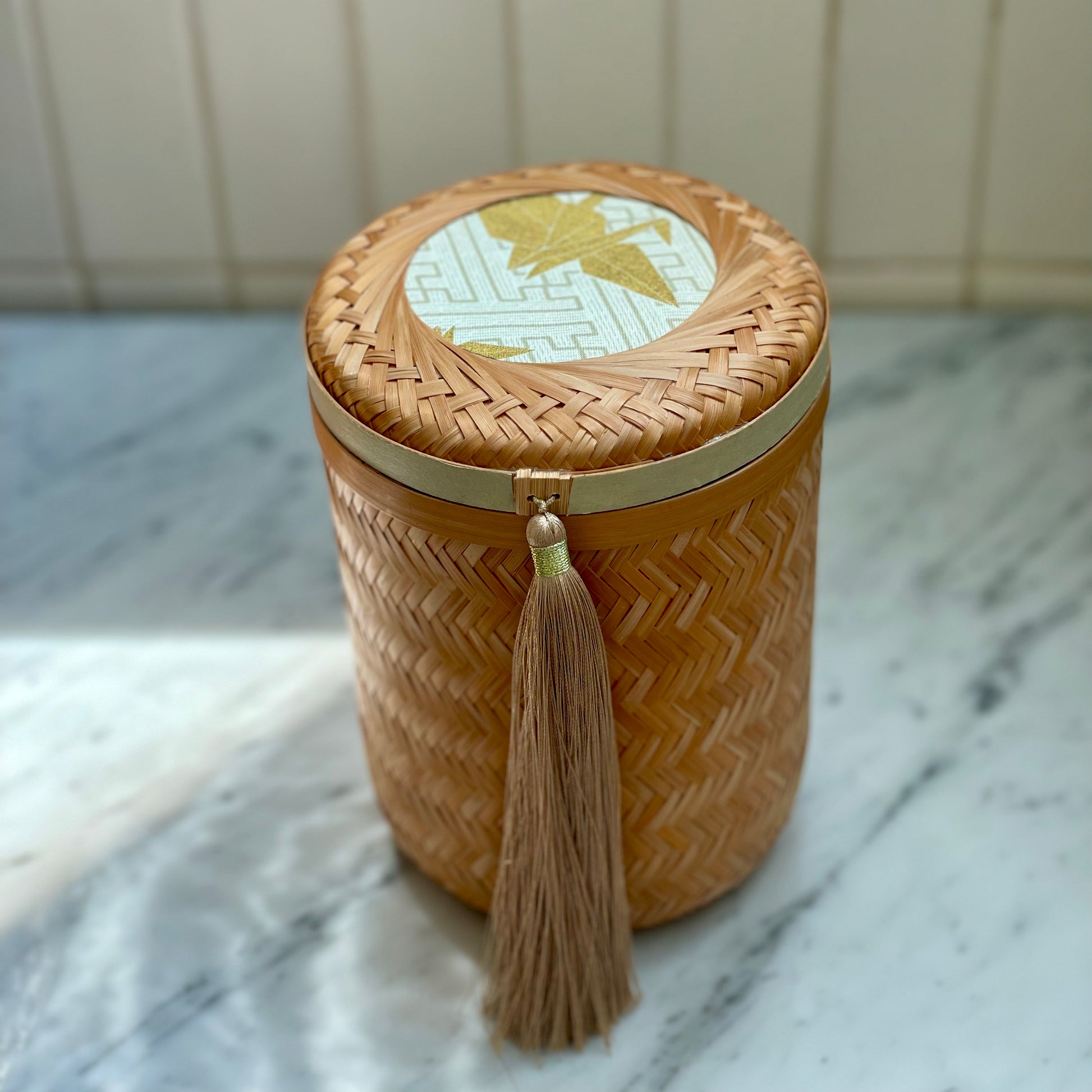 Merging traditional bamboo craft with a sleek, elongated design, this extra-long basket brings subtle elegance to any space. Its coordinated fabric, matching washi tape, and long, flowing tassel create a harmonious, decorative finish. Perfect for organizing pens, pencils, and markers — or hairbrushes, combs, and other daily essentials — it combines beauty and function with effortless charm.