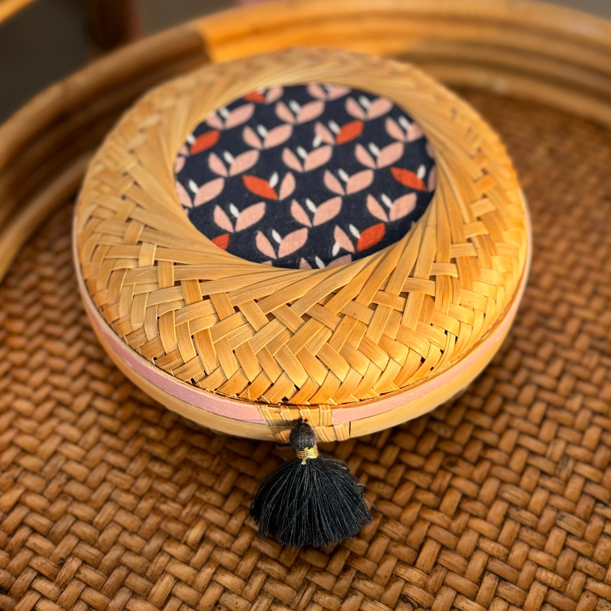 Composition: Bamboo, cotton fabric, washi tape, polyester tassel