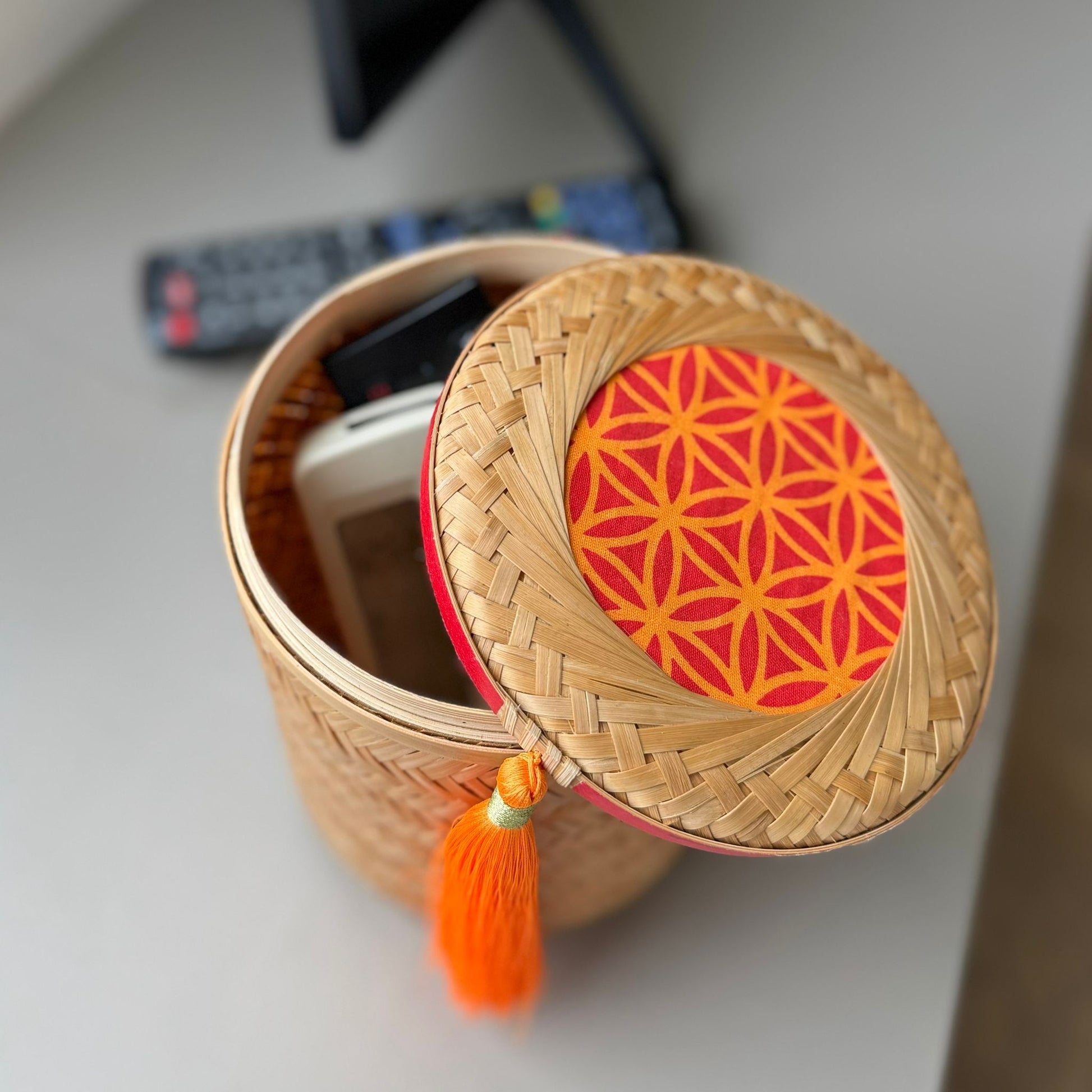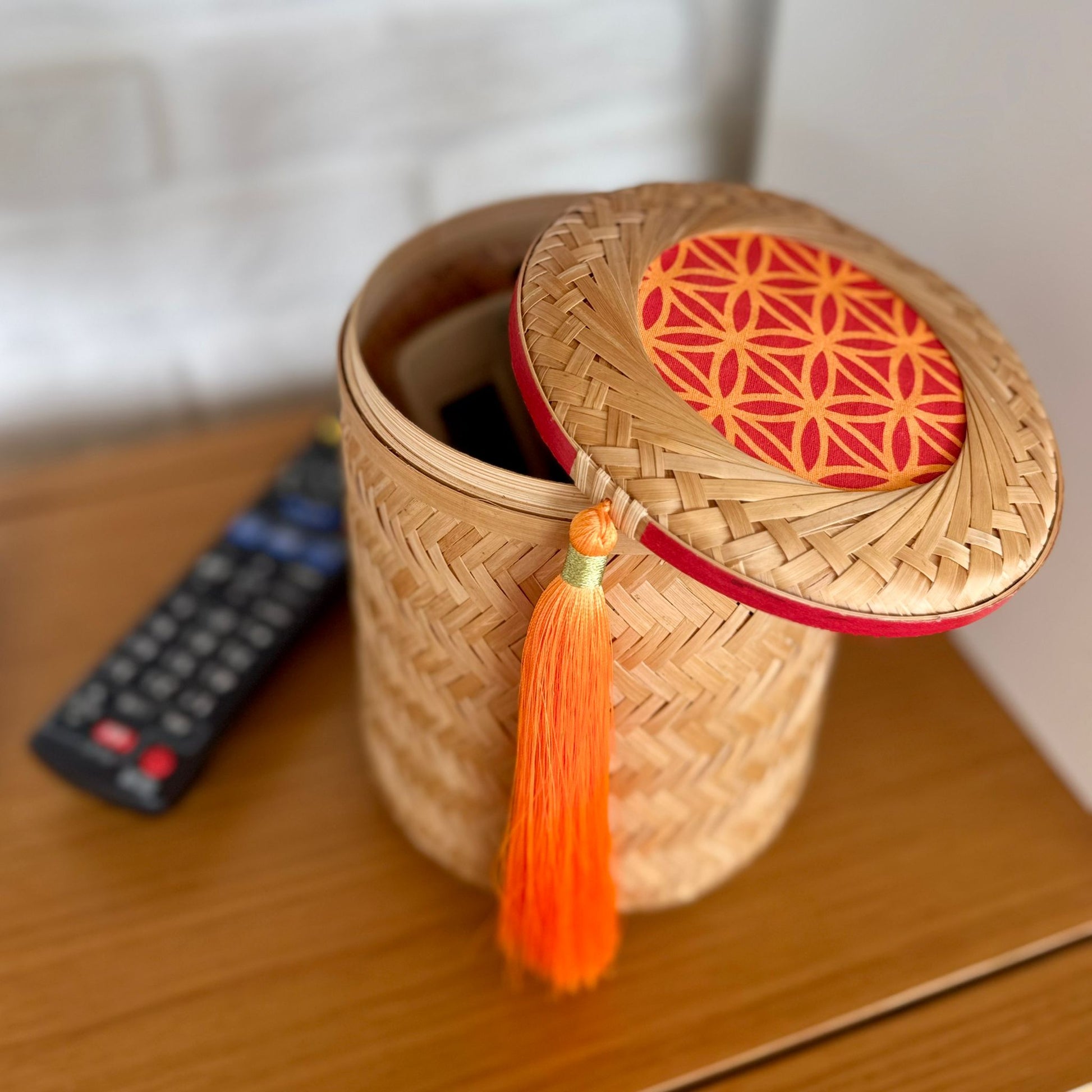 Merging traditional bamboo craft with a sleek, elongated design, this extra-long basket brings subtle elegance to any space. Its coordinated fabric, matching washi tape, and long, flowing tassel create a harmonious, decorative finish. Perfect for organizing pens, pencils, and markers — or hairbrushes, combs, and other daily essentials — it combines beauty and function with effortless charm.