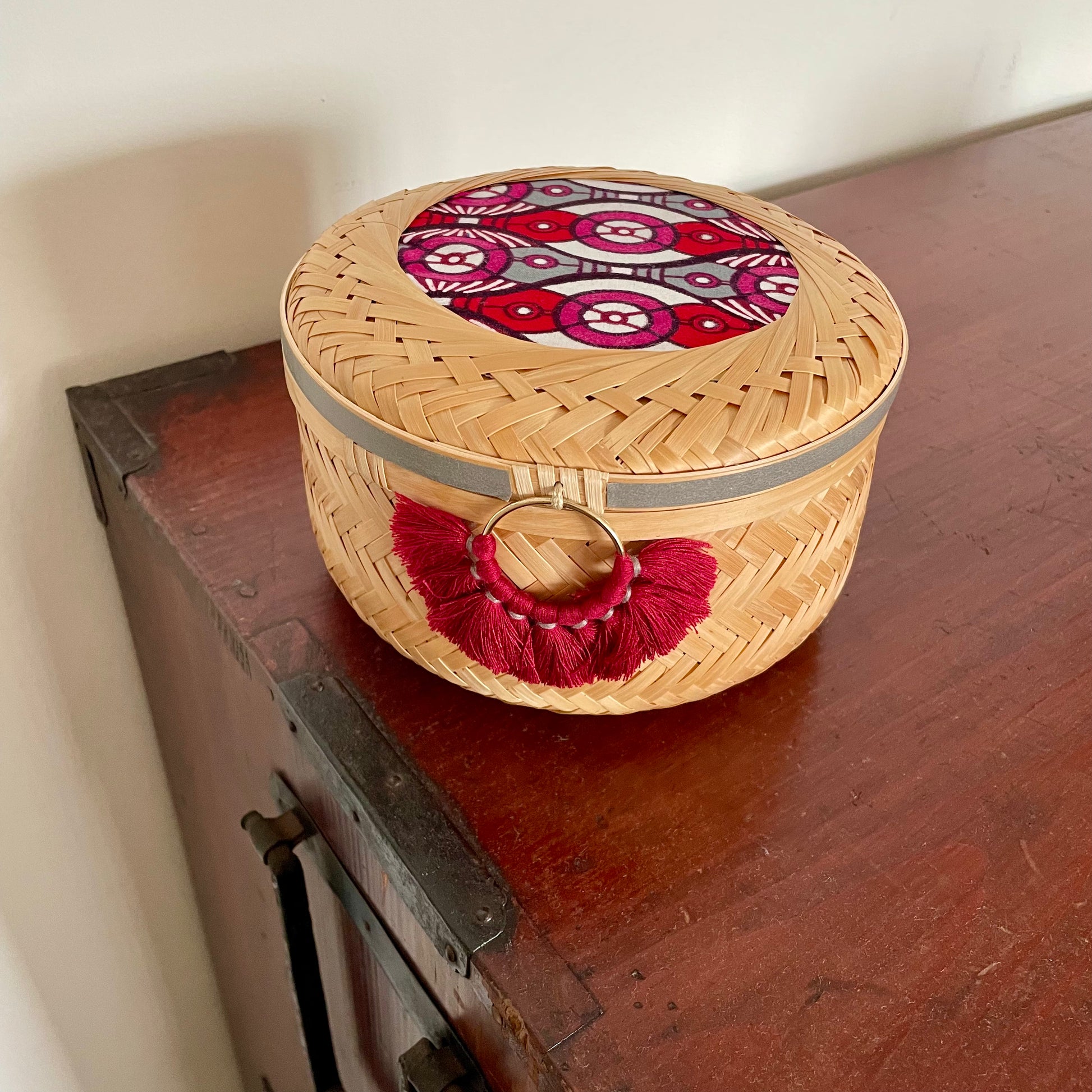 This cylindrical bamboo basket combines natural texture with modern style, elevated by a unique & charming tassel. Just the right size for essential oils or wrapped snacks, it keeps your essentials organized while adding a refined touch to your space.