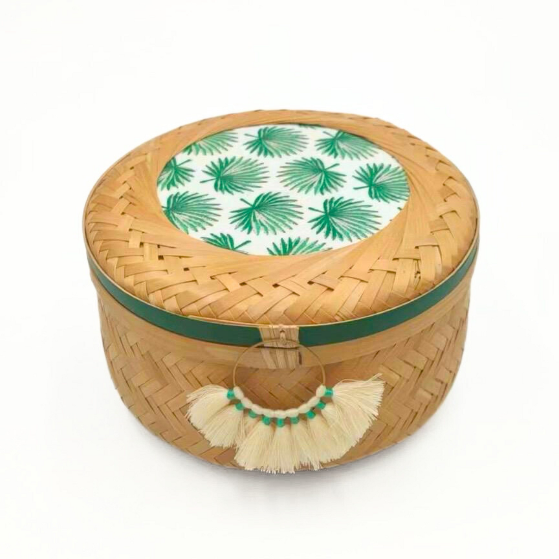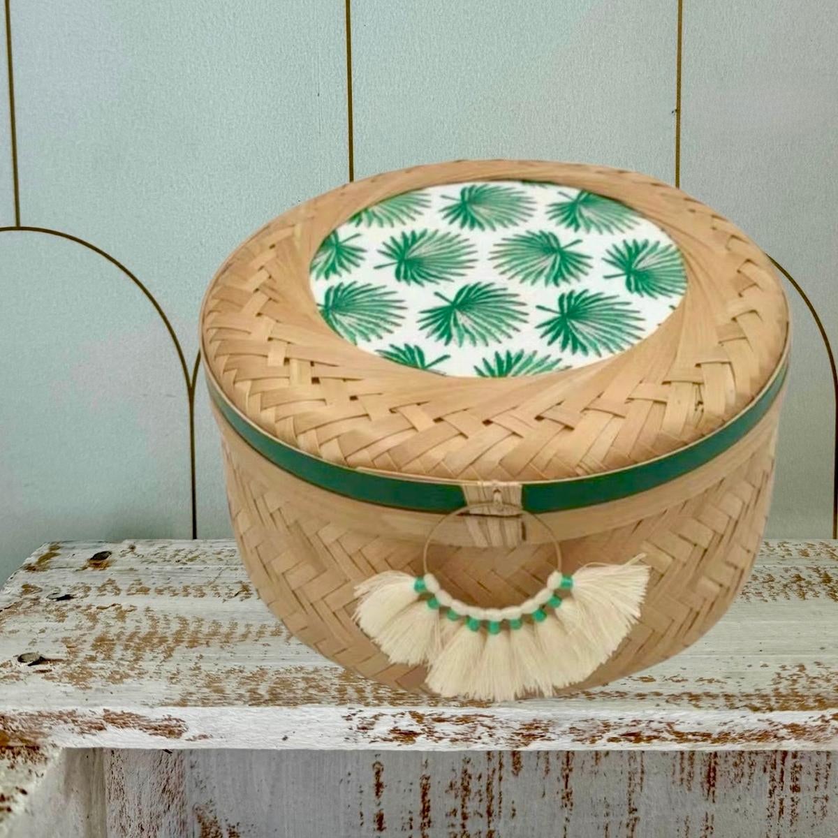 This cylindrical bamboo basket combines natural texture with modern style, elevated by a unique & charming tassel. Just the right size for essential oils or wrapped snacks, it keeps your essentials organized while adding a refined touch to your space.