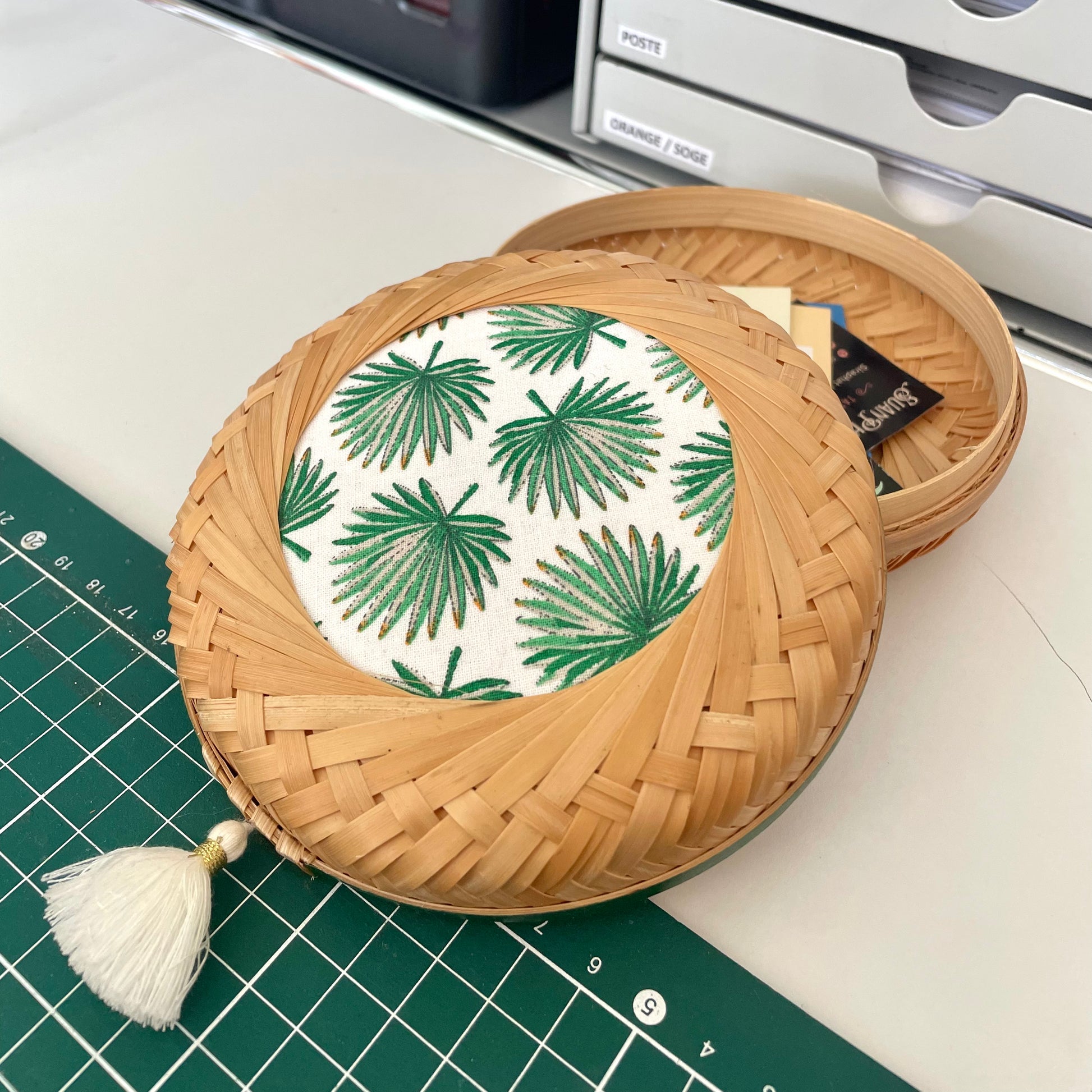 everything easy to see and grab. The lid features a carefully chosen fabric that’s beautifully