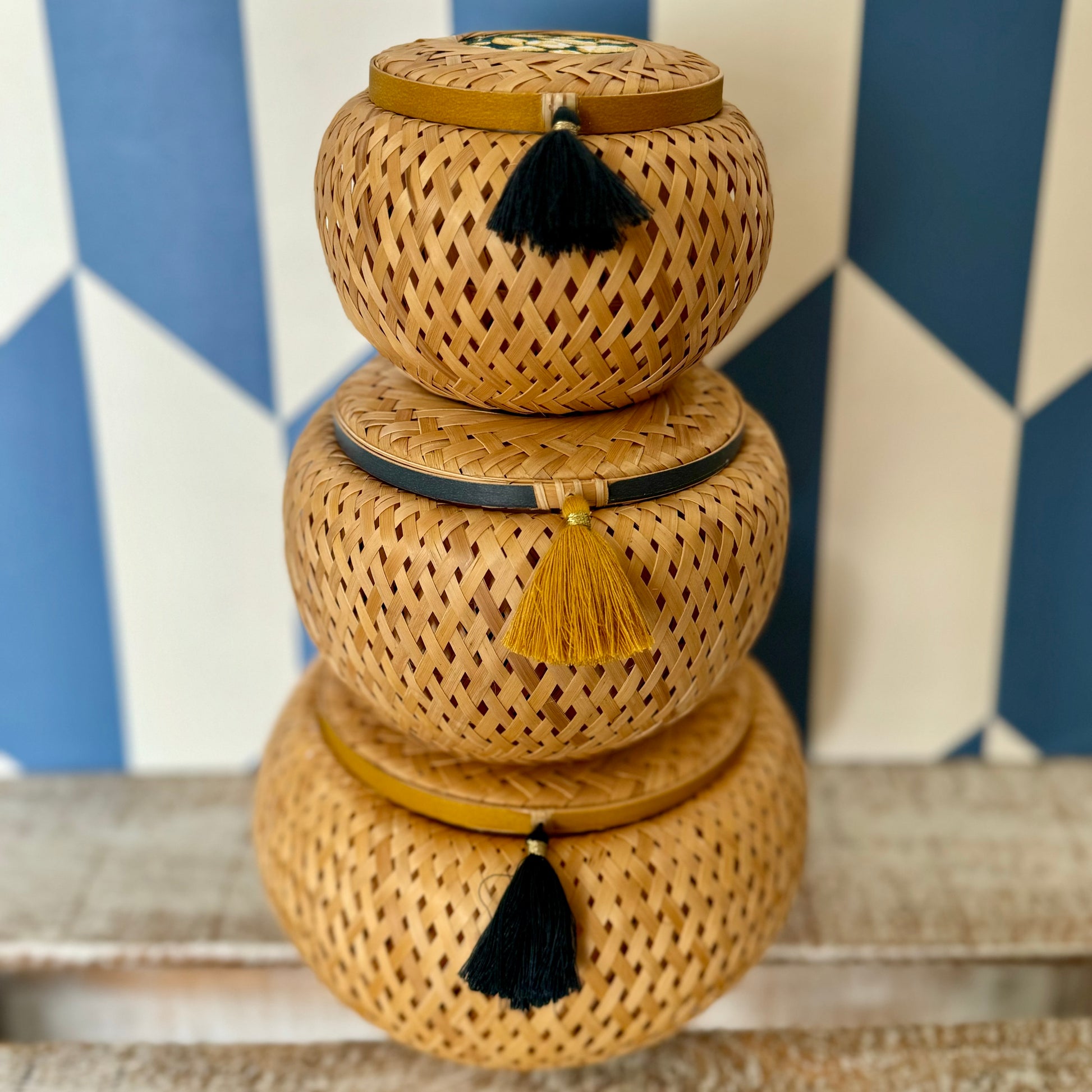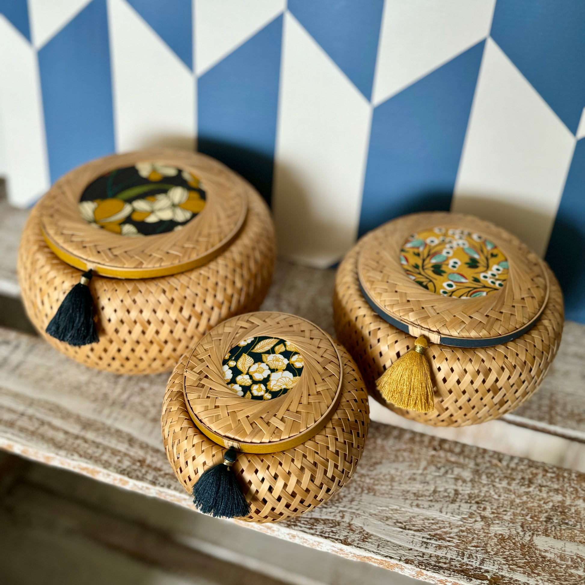 Hand-assembled by Vietnamese artisans and decorated by Home Sweet Home, a Chinese NGO that empowers disabled and homeless individuals through meaningful work.