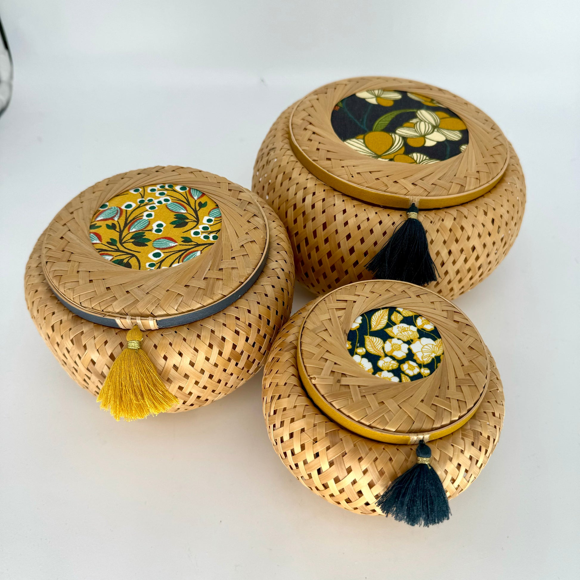Composition: Bamboo, cotton fabric, washi tape, polyester tassel