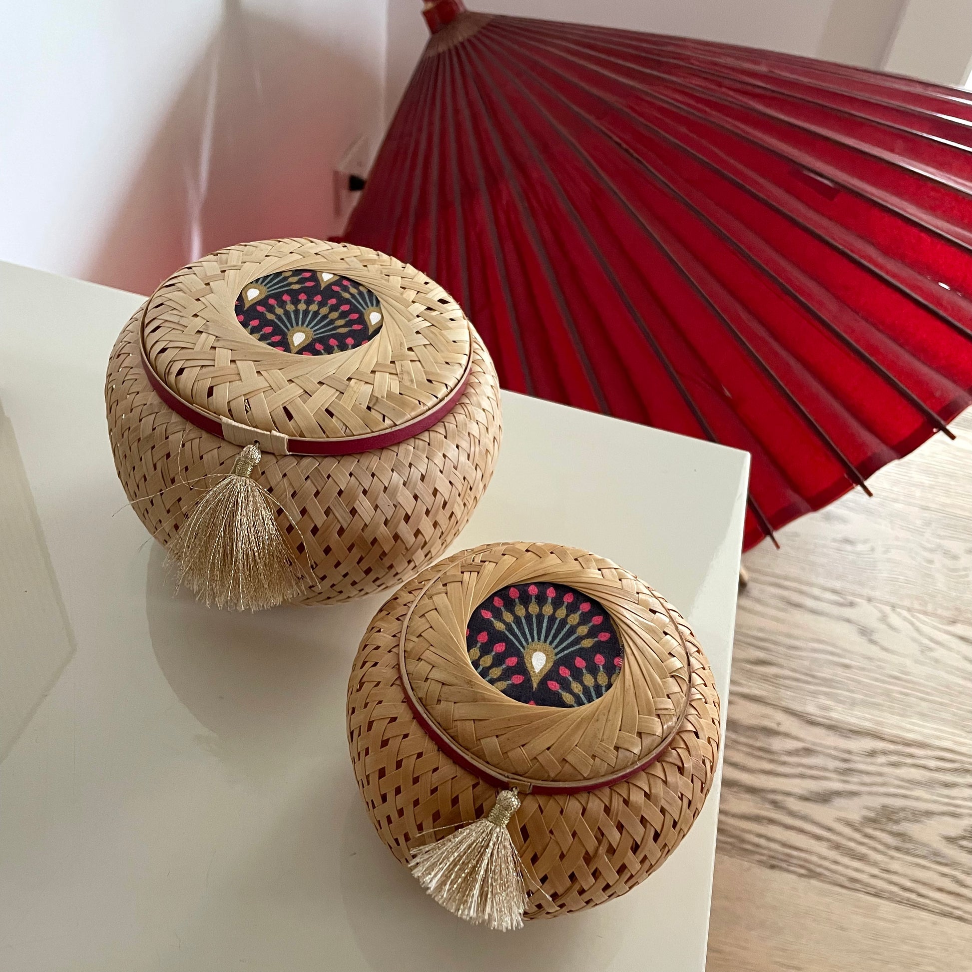 Composition: Bamboo, cotton fabric, washi tape, polyester tassel