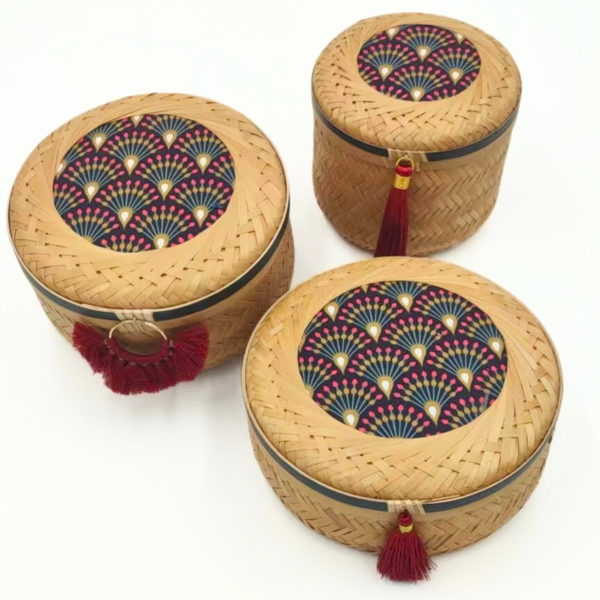 This cylindrical bamboo basket combines natural texture with modern style, elevated by a unique & charming tassel. Just the right size for essential oils or wrapped snacks, it keeps your essentials organized while adding a refined touch to your space.