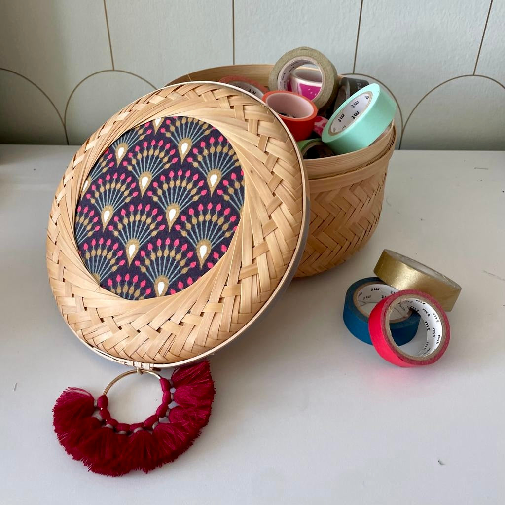 Composition: Bamboo, cotton fabric, washi tape, polyester tassel