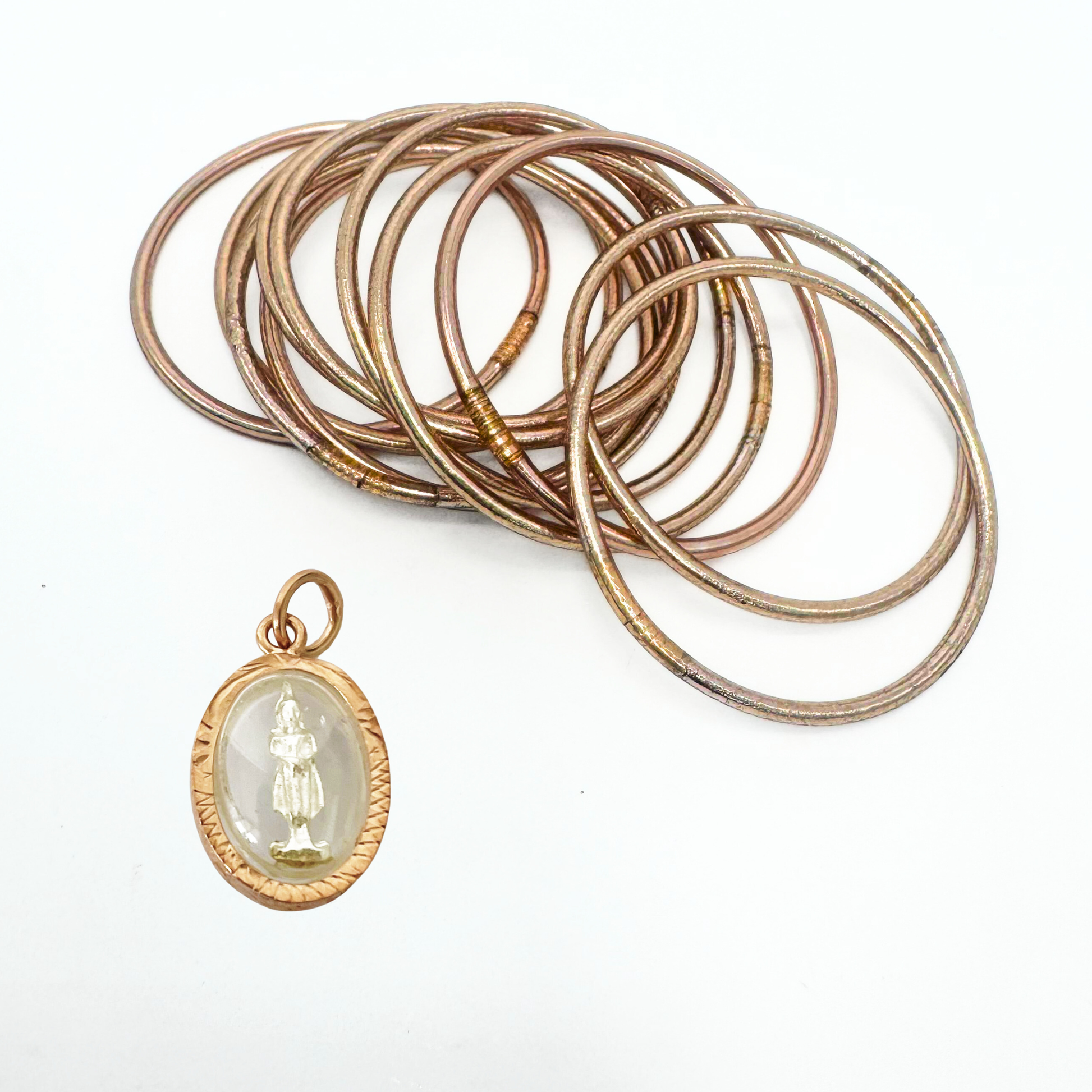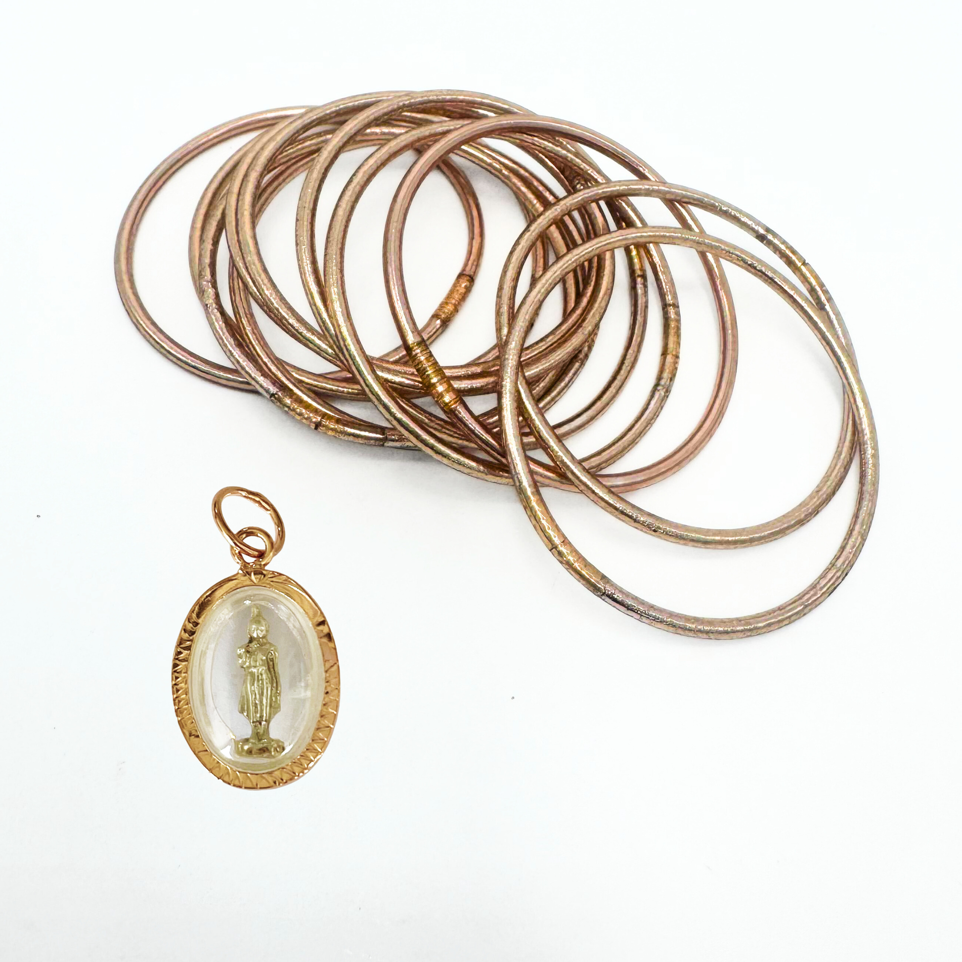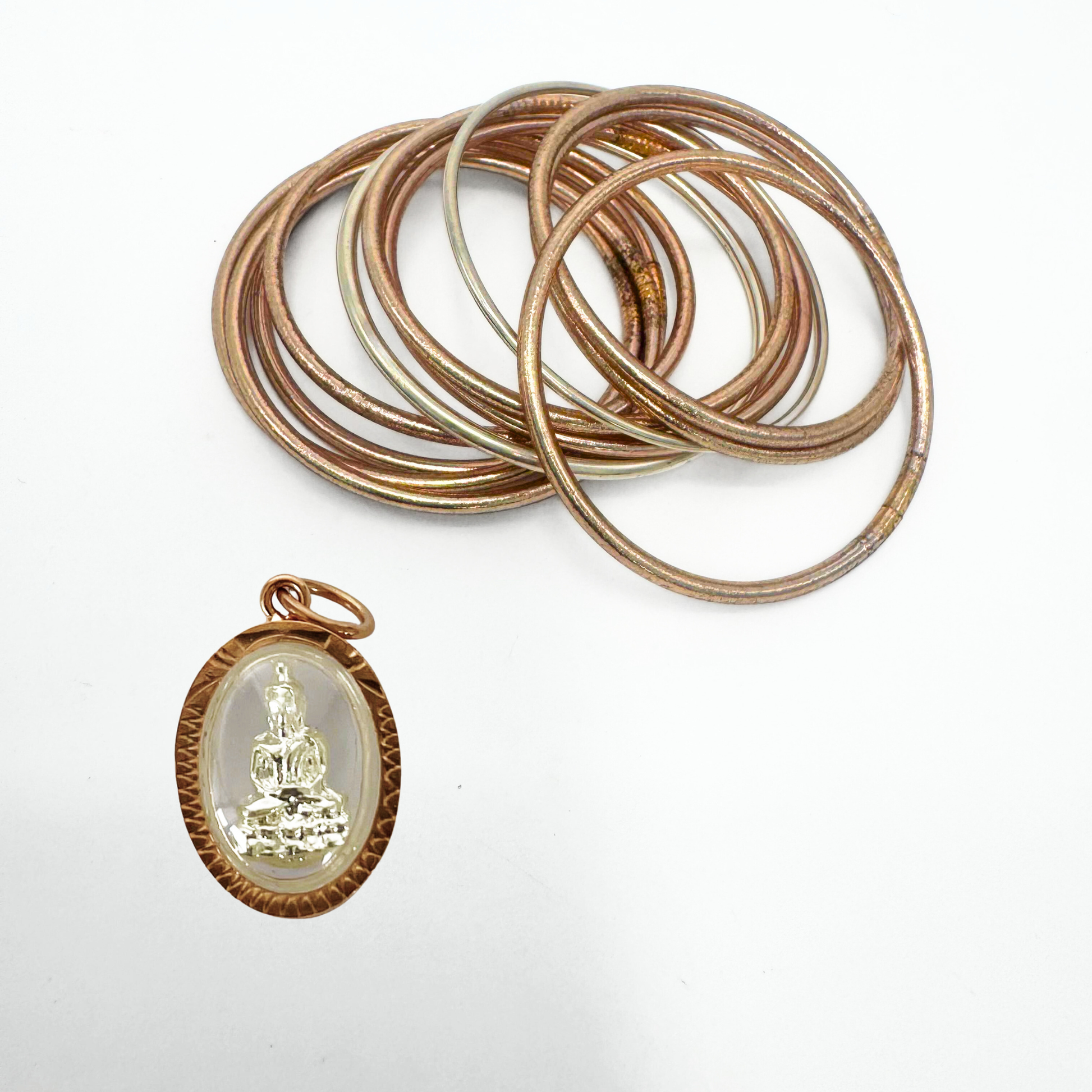 Also known as Temple Bangles, they are handmade by Buddhist monks in northern Thailand, from clear, durable plastic tubing, often containing a tiny piece of gold leaf, holy powder, or a blessed scroll inside. Traditionally sealed with a protective mantra, they are worn in odd numbers for balance and protection. Lightweight, silent, and waterproof, they are sold in sets of nine, each featuring a Buddha or Ganesh pendant. The Birthday Buddha reflects the posture of the Buddha for each day of the week — based on your birth date — while Ganesh, the revered Indian deity, symbolizes wisdom, prosperity, and the removal of obstacles.