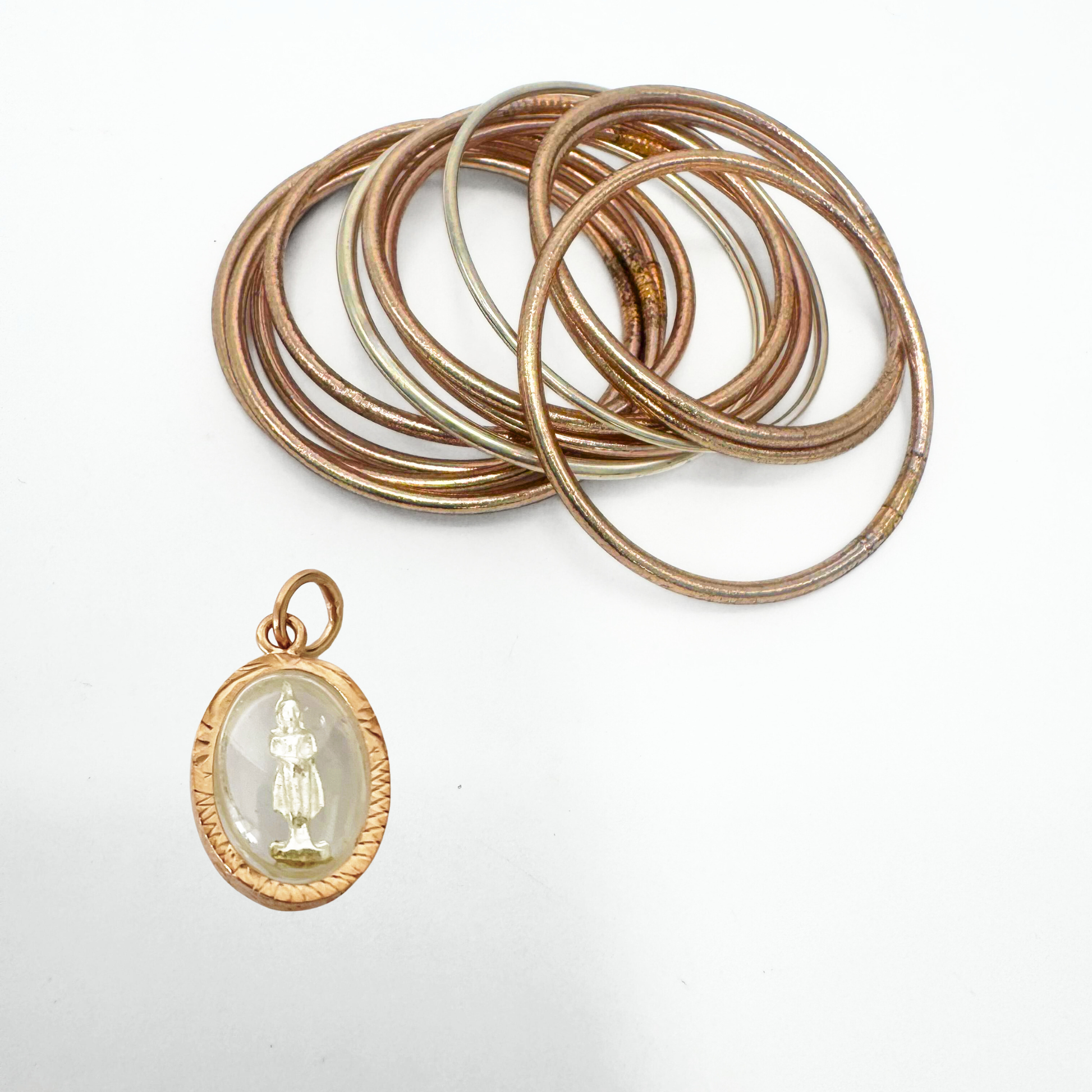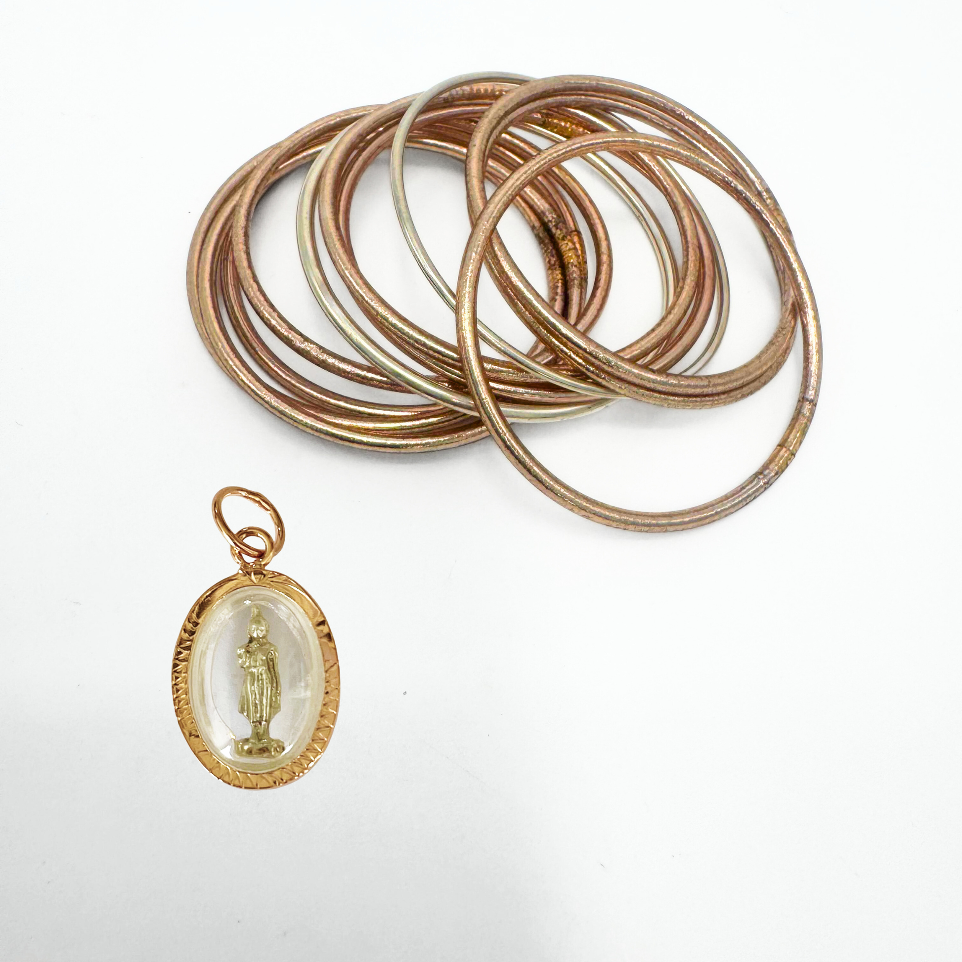 Available in yellow or rose gold for Buddha, or yellow gold for Ganesh, the set can also be paired with two sterling silver bangles for a refined finish)