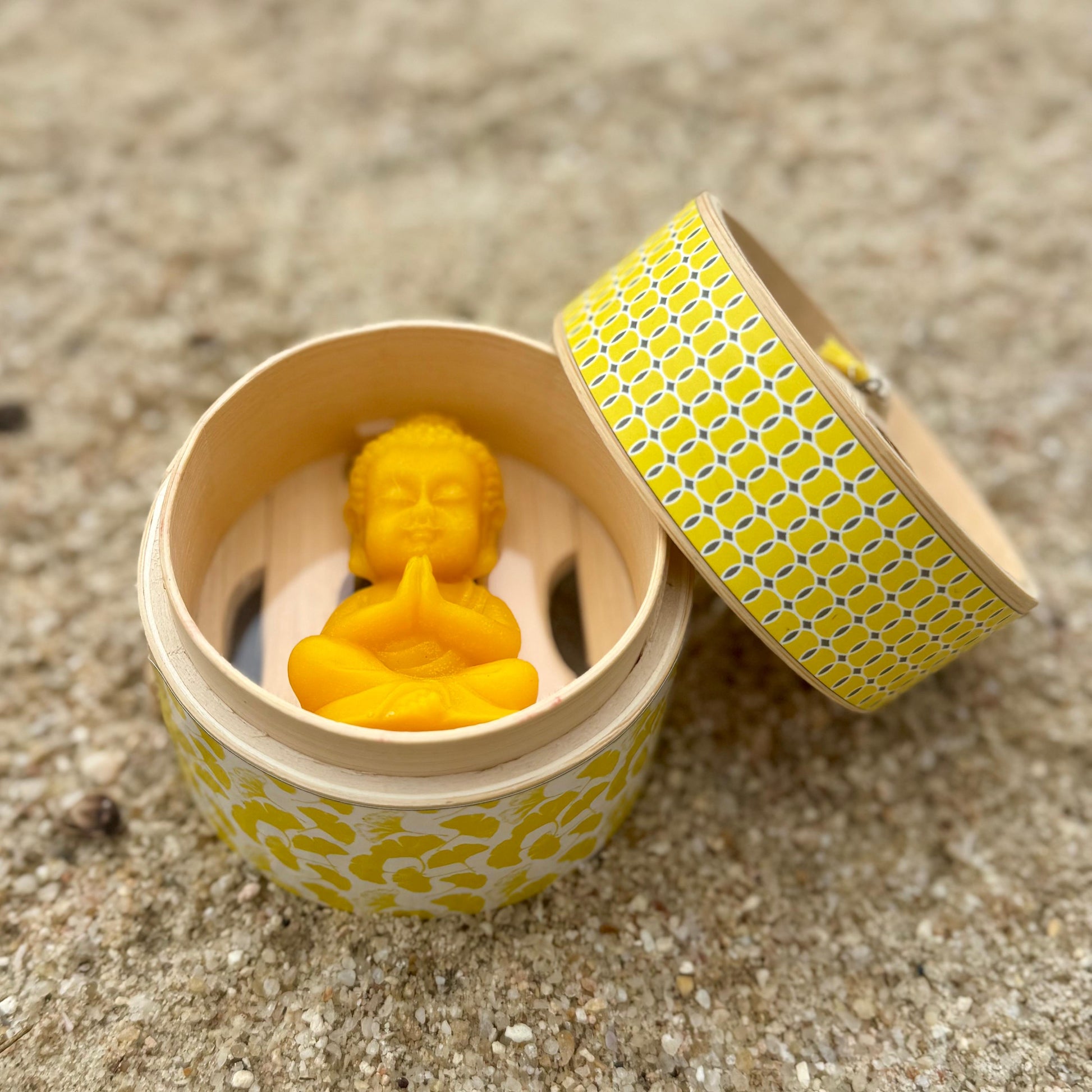 A serene, meditating Buddha crafted from a natural beeswax–soy blend. Available in a variety of colors to beautifully complement your SAN | XIA basket.