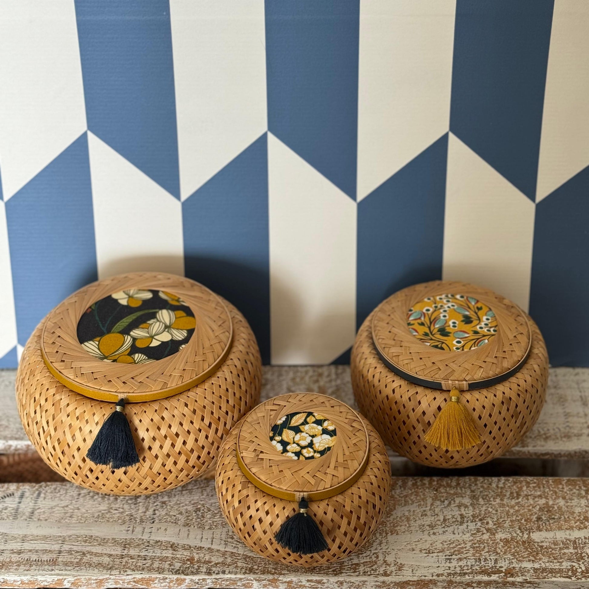 Hand-assembled by Vietnamese artisans and decorated by Home Sweet Home, a Chinese NGO that empowers disabled and homeless individuals through meaningful work.