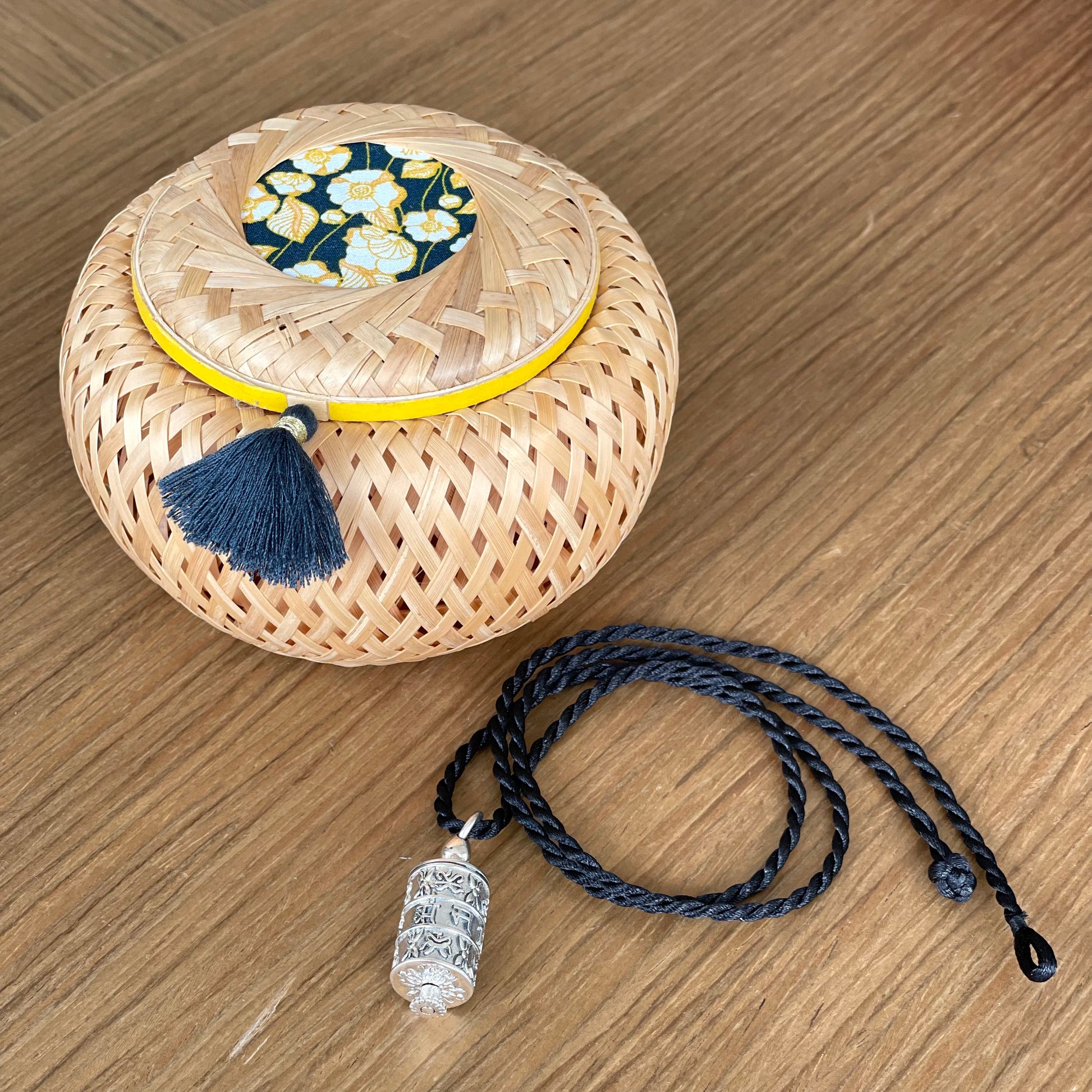 Composition: Bamboo, cotton fabric, washi tape, polyester tassel