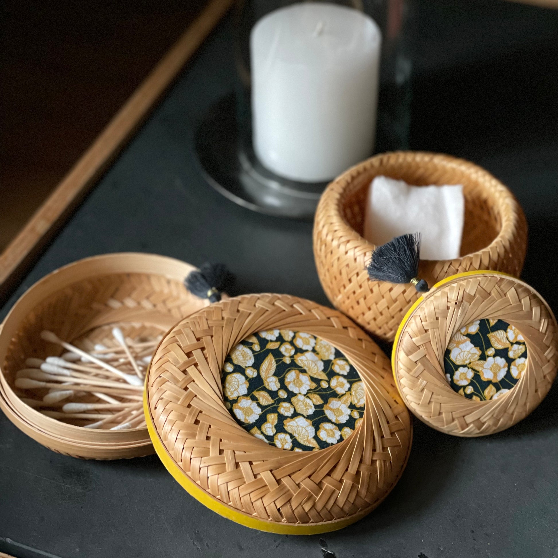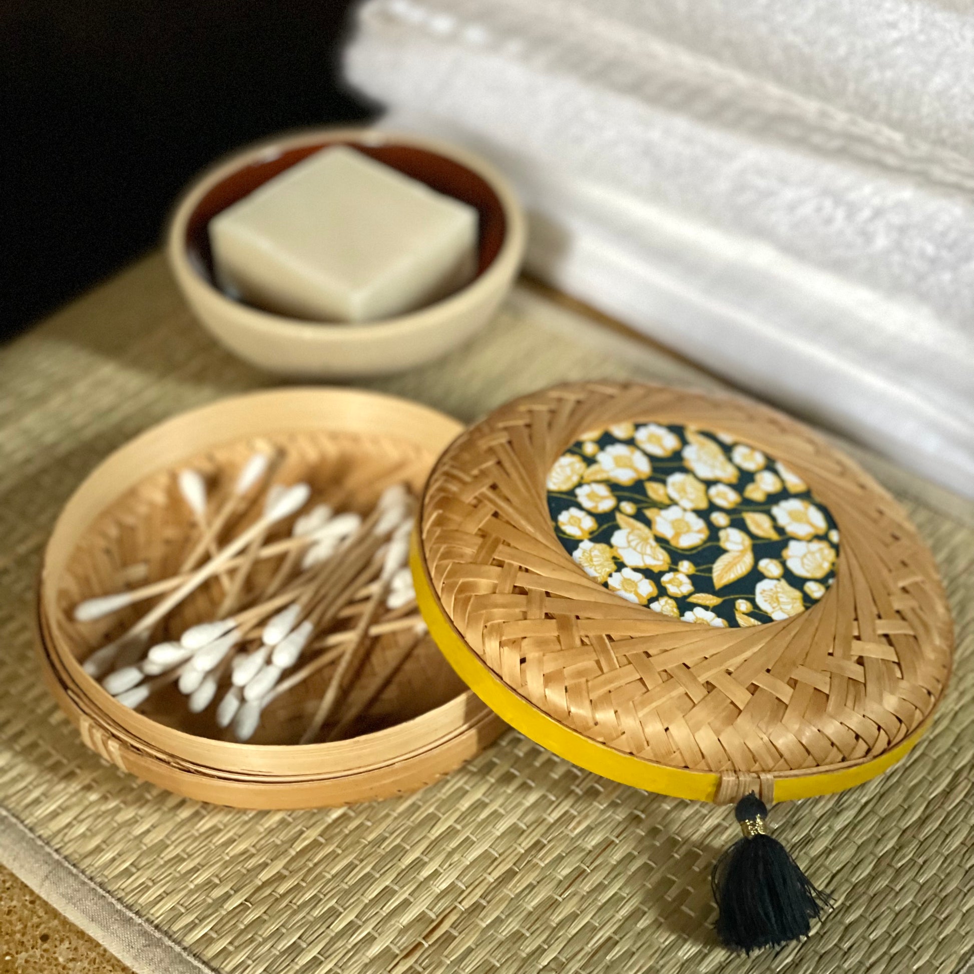 Composition: Bamboo, cotton fabric, washi tape, polyester tassel