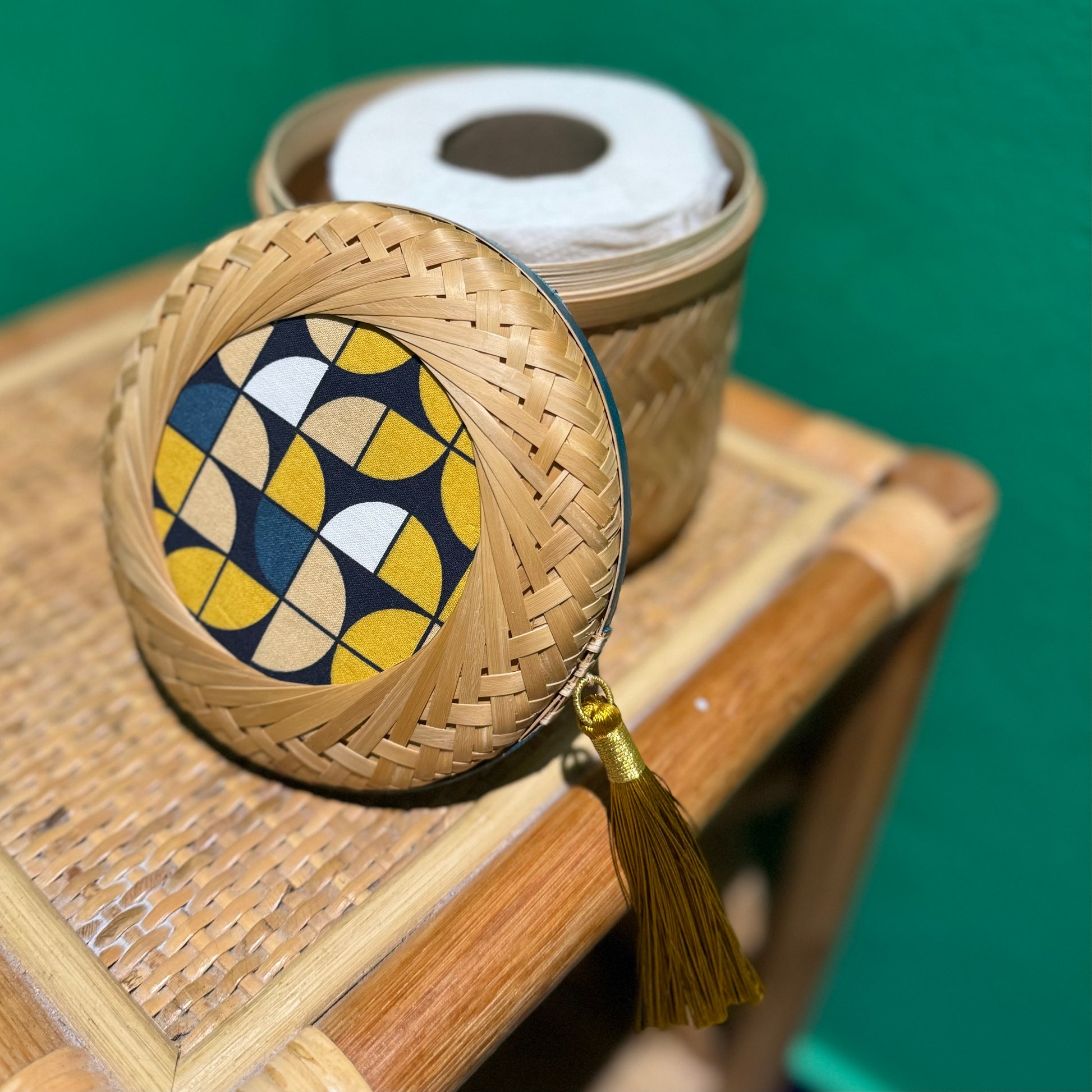 Composition: Bamboo, cotton fabric, washi tape, polyester tassel