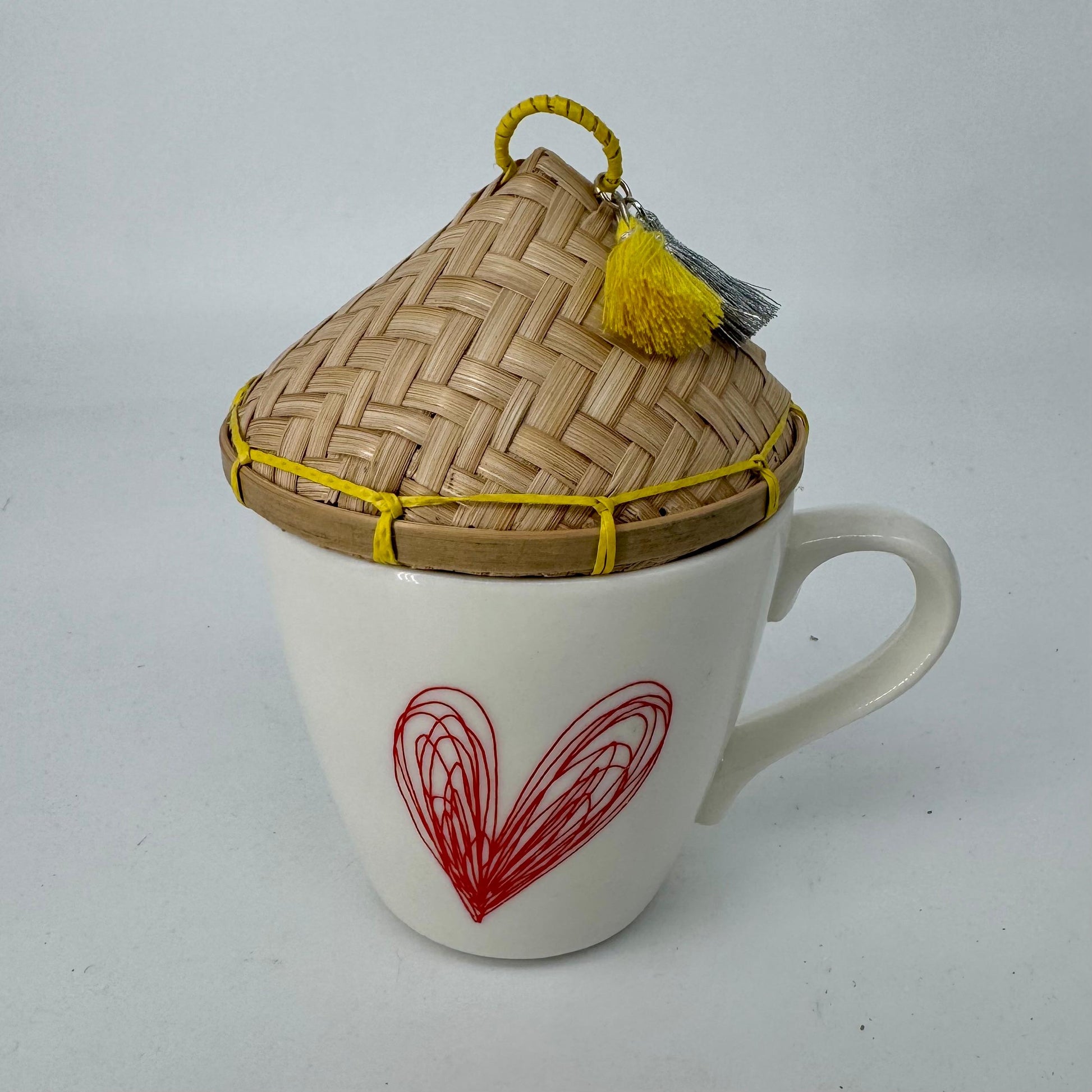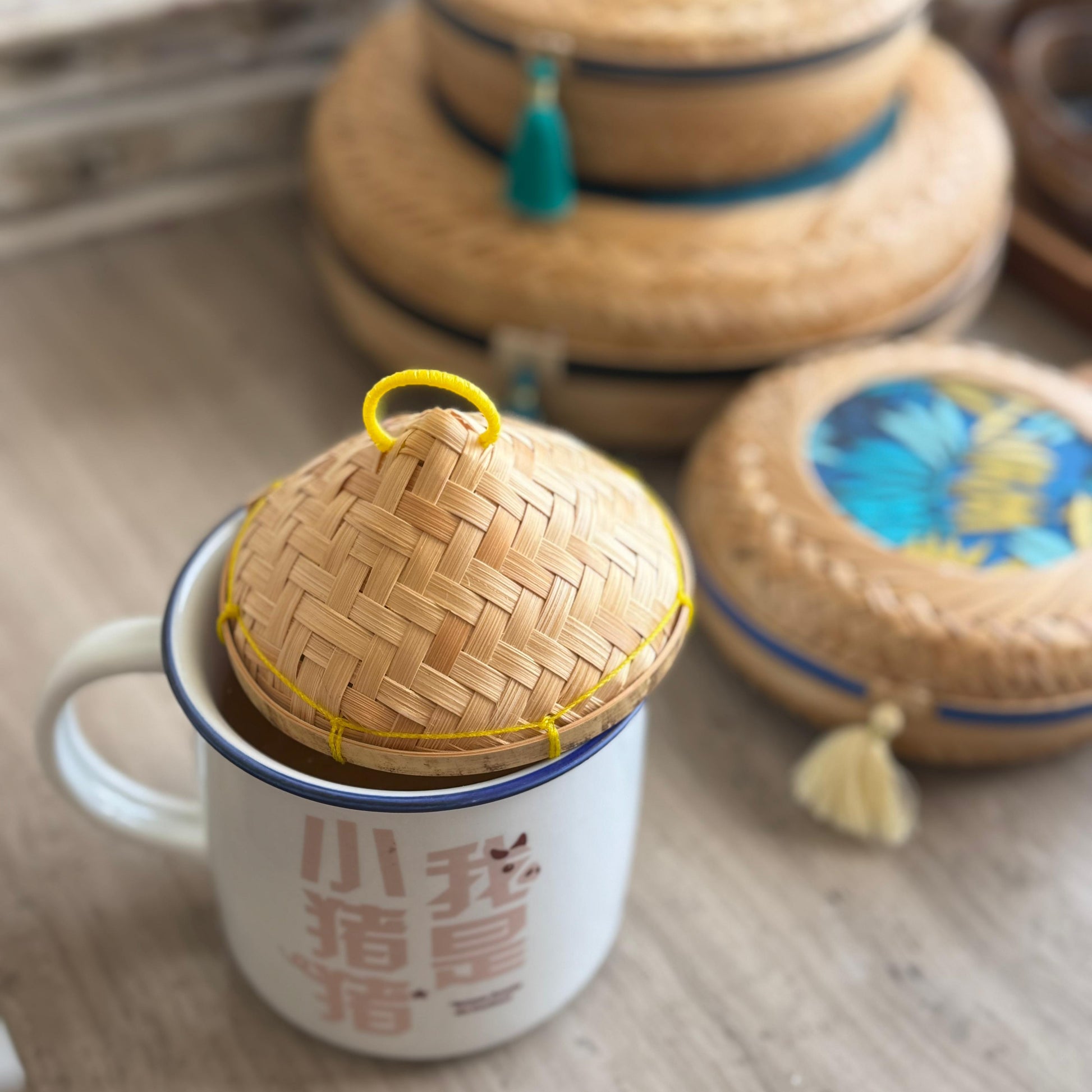 Inspired by the iconic Vietnamese conical hat, this handwoven bamboo cover keeps food and drinks warm while adding artisanal elegance. Finished with playful tassels that reflect the original stitch, it blends tradition with everyday practicality. Available in two sizes.