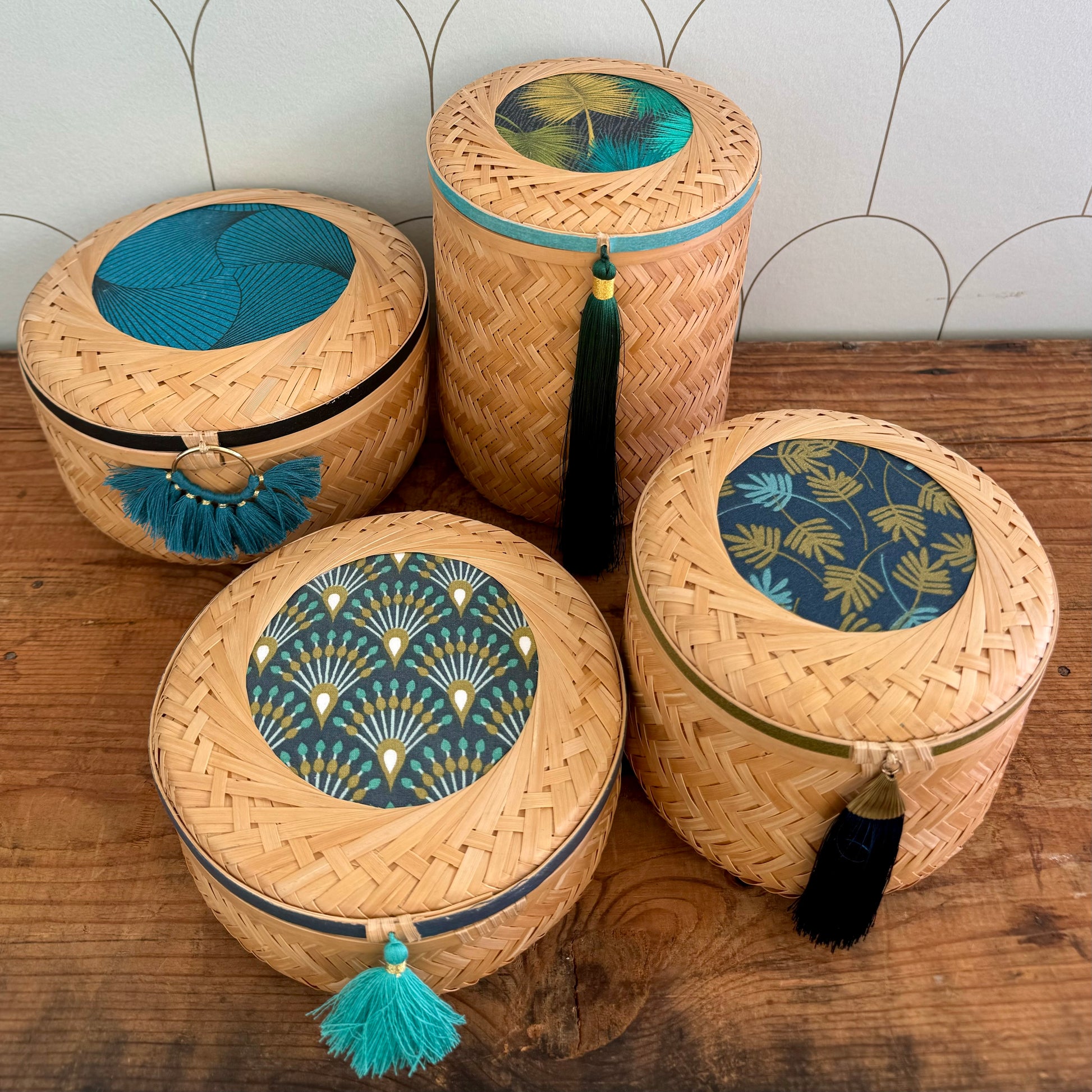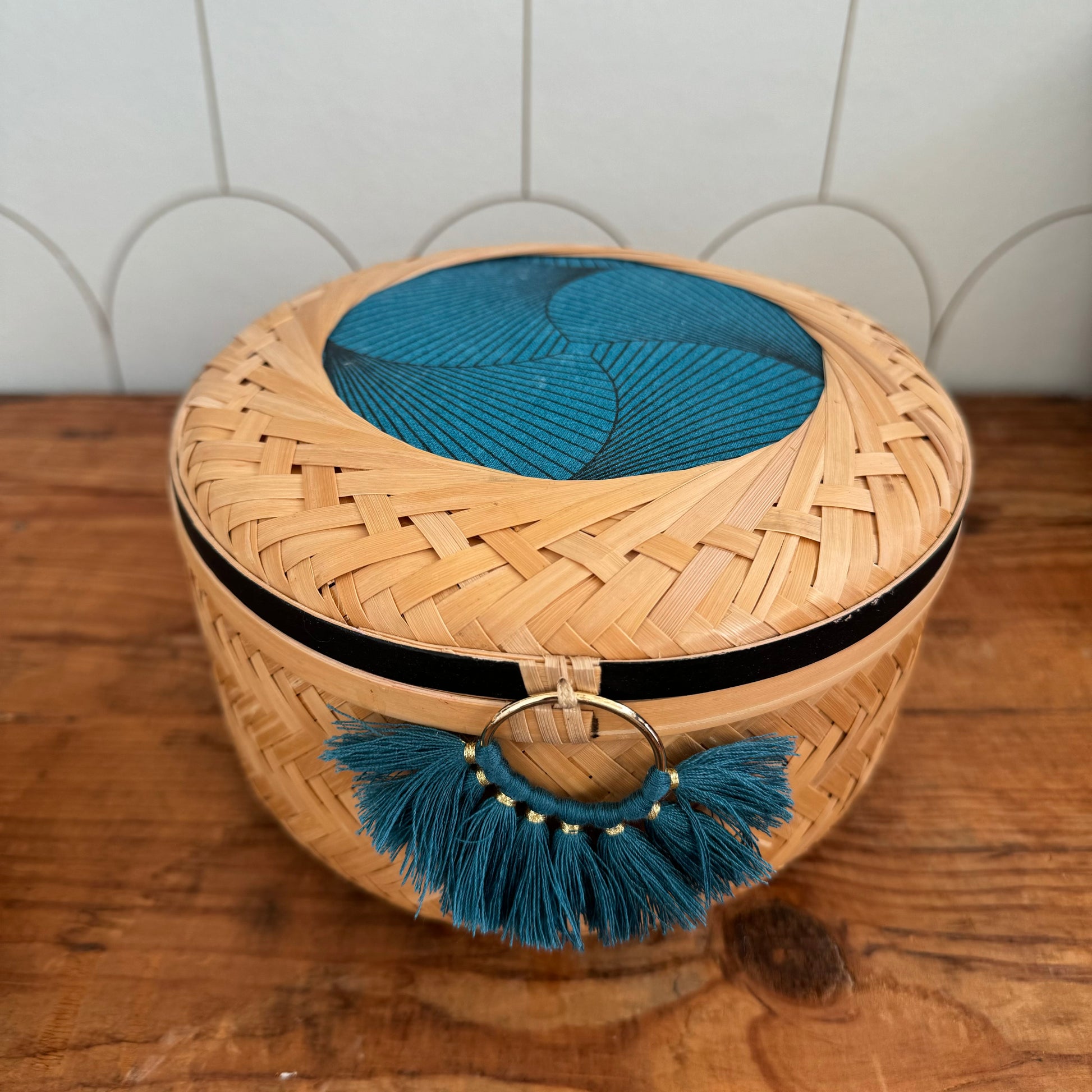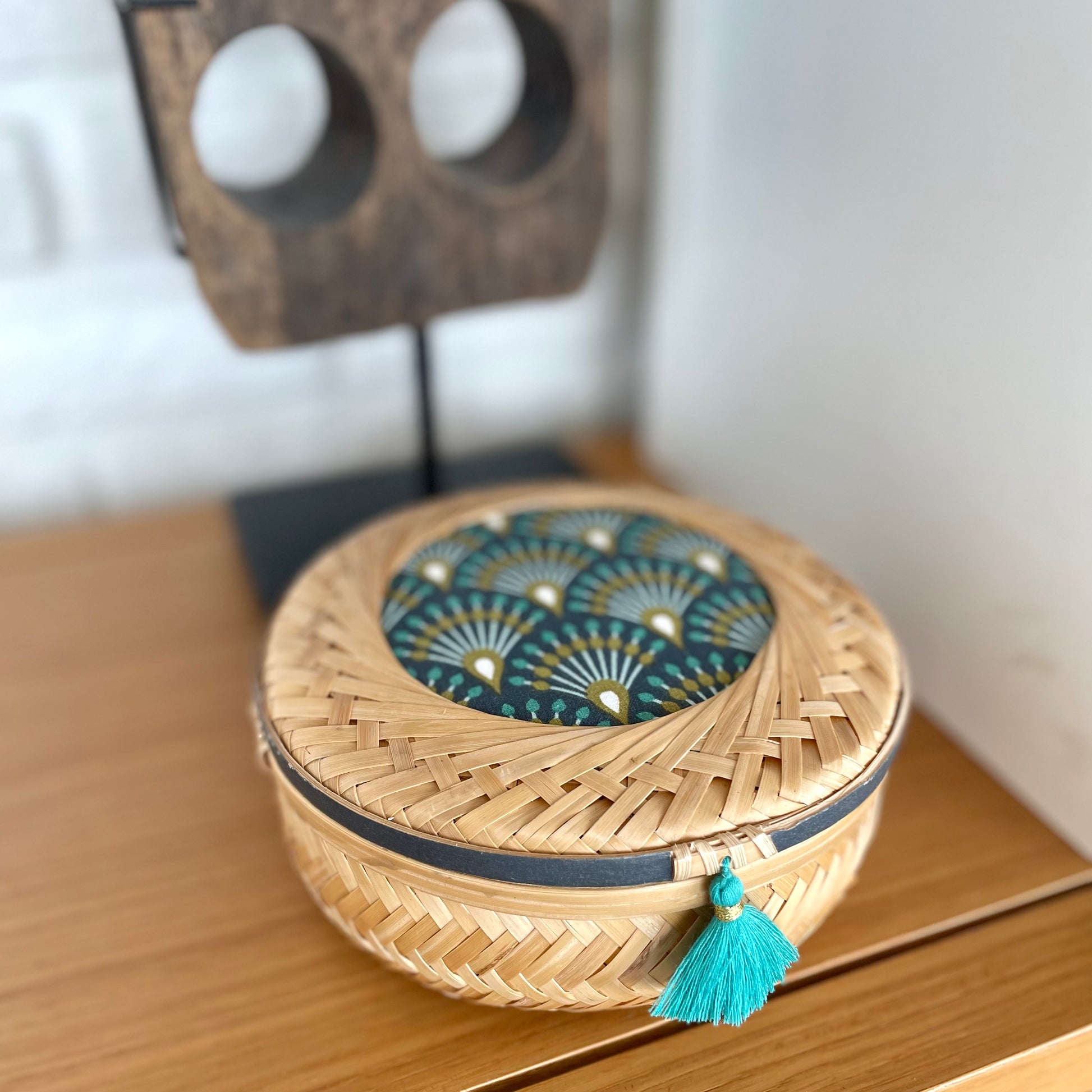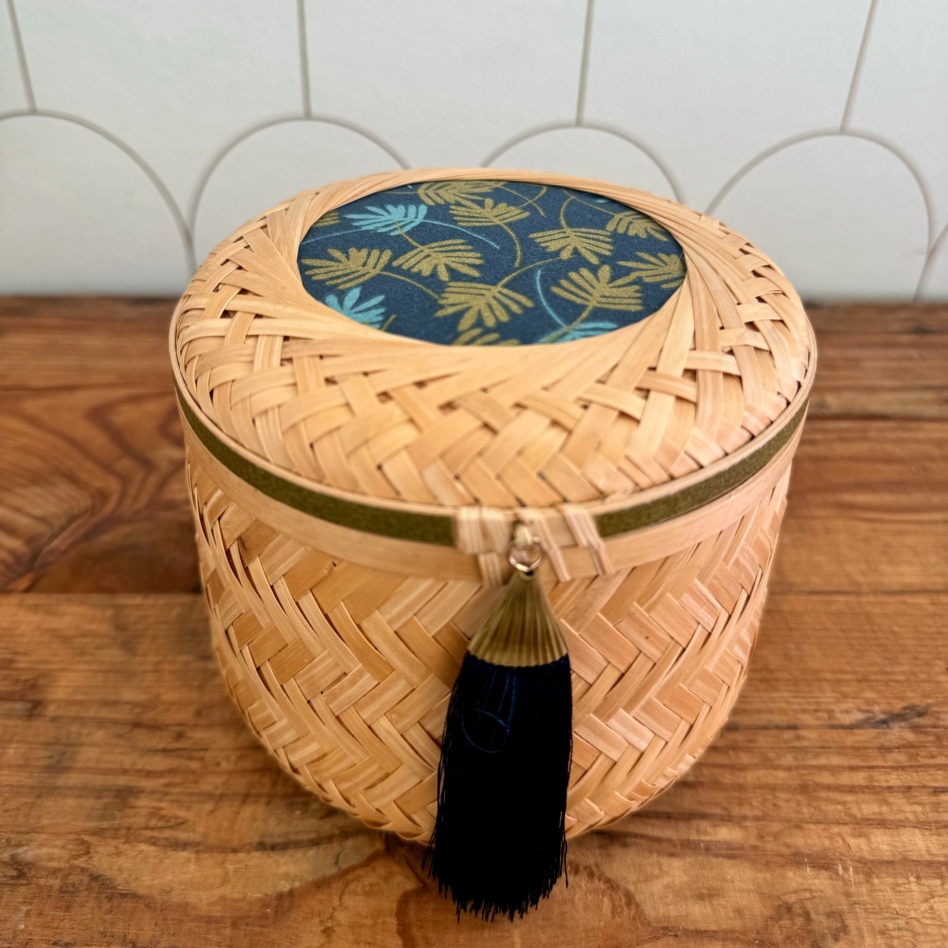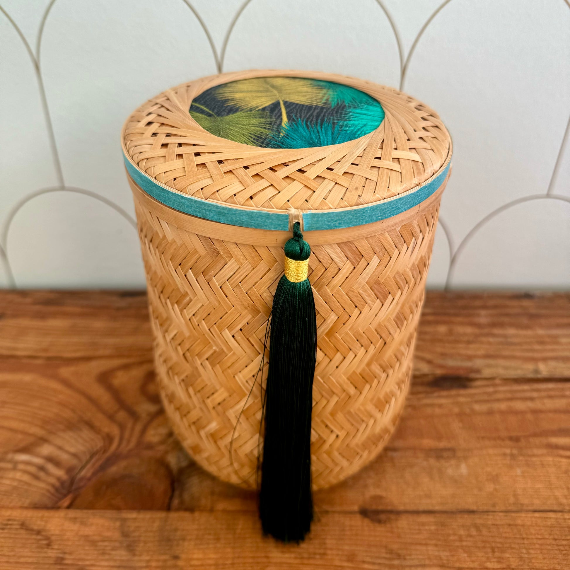 Merging traditional bamboo craft with a sleek, elongated design, this extra-long basket brings subtle elegance to any space. Its coordinated fabric, matching washi tape, and long, flowing tassel create a harmonious, decorative finish. Perfect for organizing pens, pencils, and markers — or hairbrushes, combs, and other daily essentials — it combines beauty and function with effortless charm.