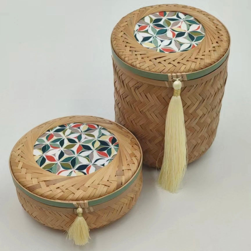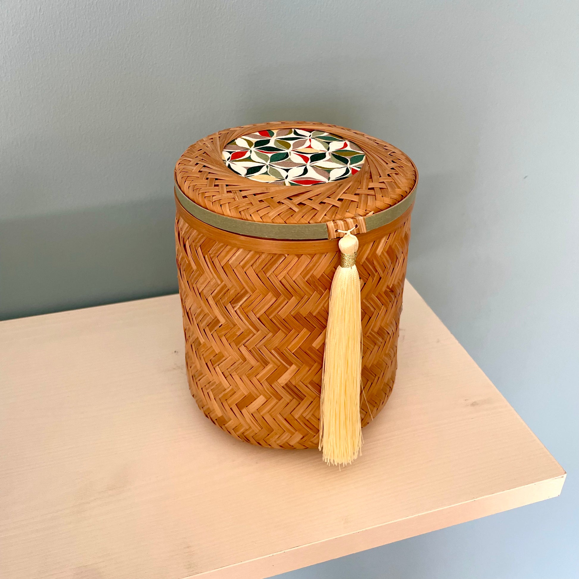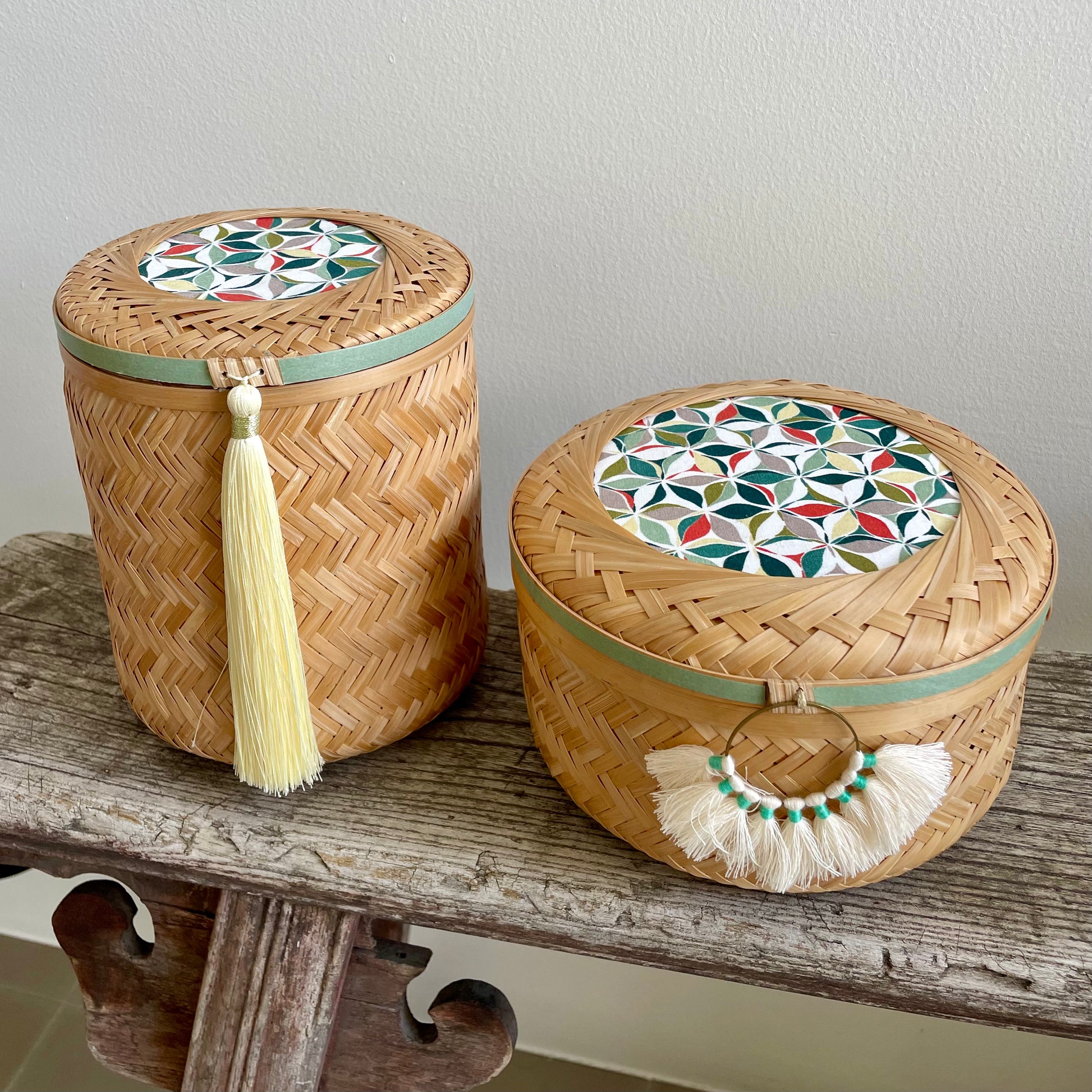 Merging traditional bamboo craft with a sleek, elongated design, this extra-long basket brings subtle elegance to any space. Its coordinated fabric, matching washi tape, and long, flowing tassel create a harmonious, decorative finish. Perfect for organizing pens, pencils, and markers — or hairbrushes, combs, and other daily essentials — it combines beauty and function with effortless charm.