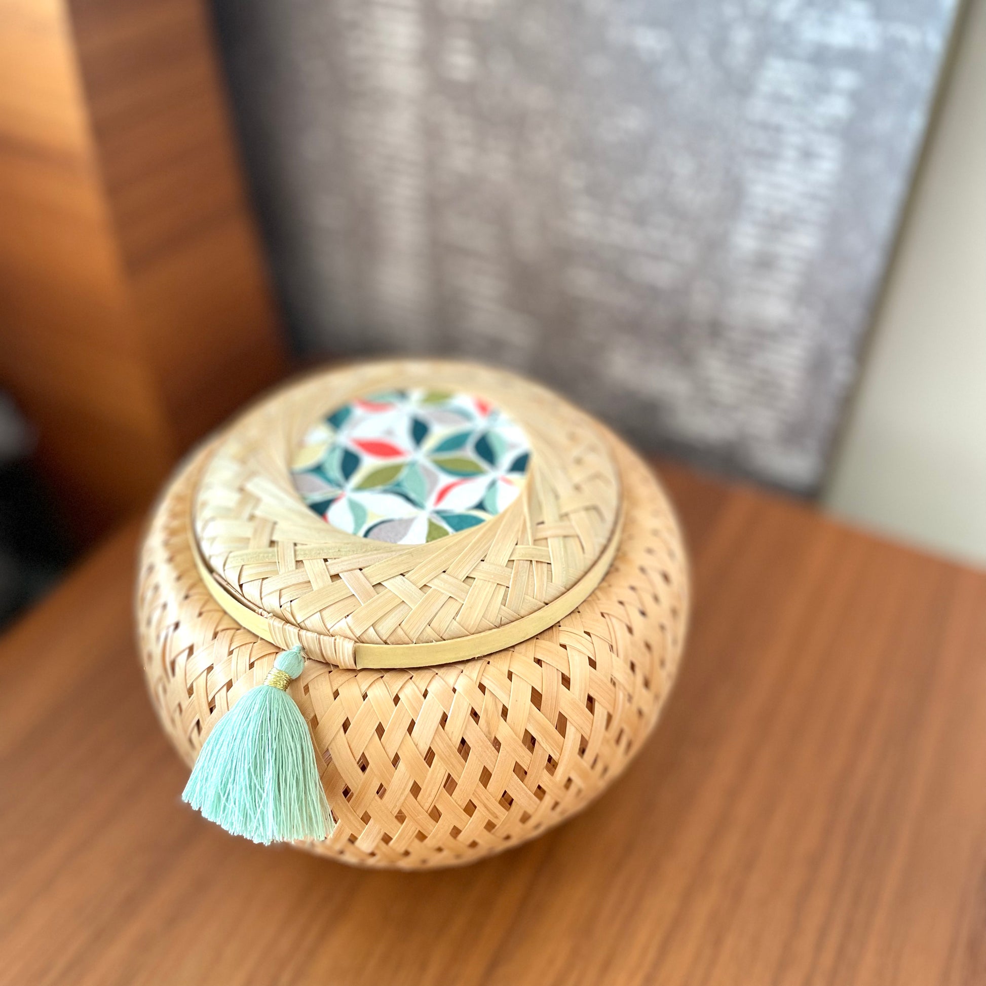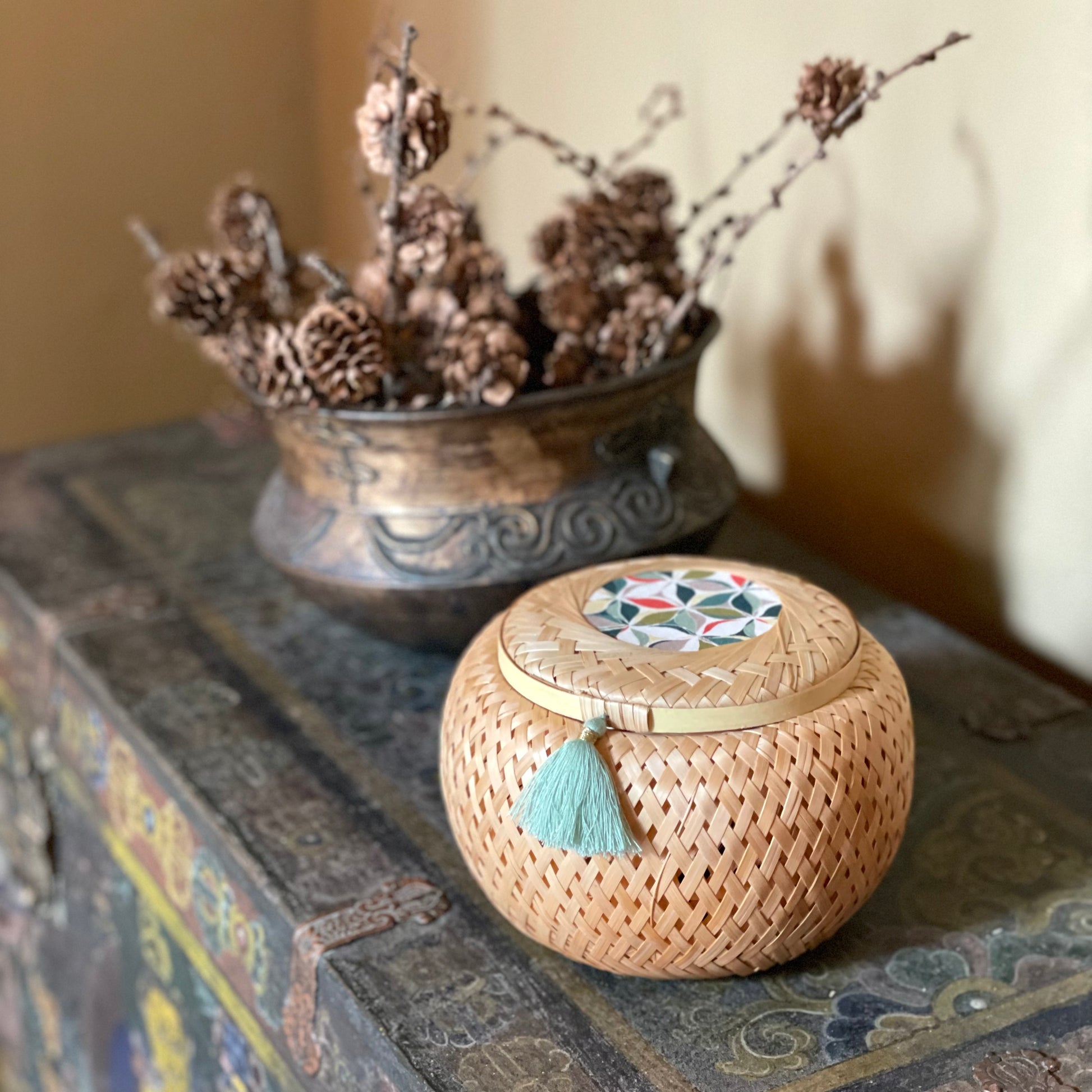 Hand-assembled by Vietnamese artisans and decorated by Home Sweet Home, a Chinese NGO that empowers disabled and homeless individuals through meaningful work.