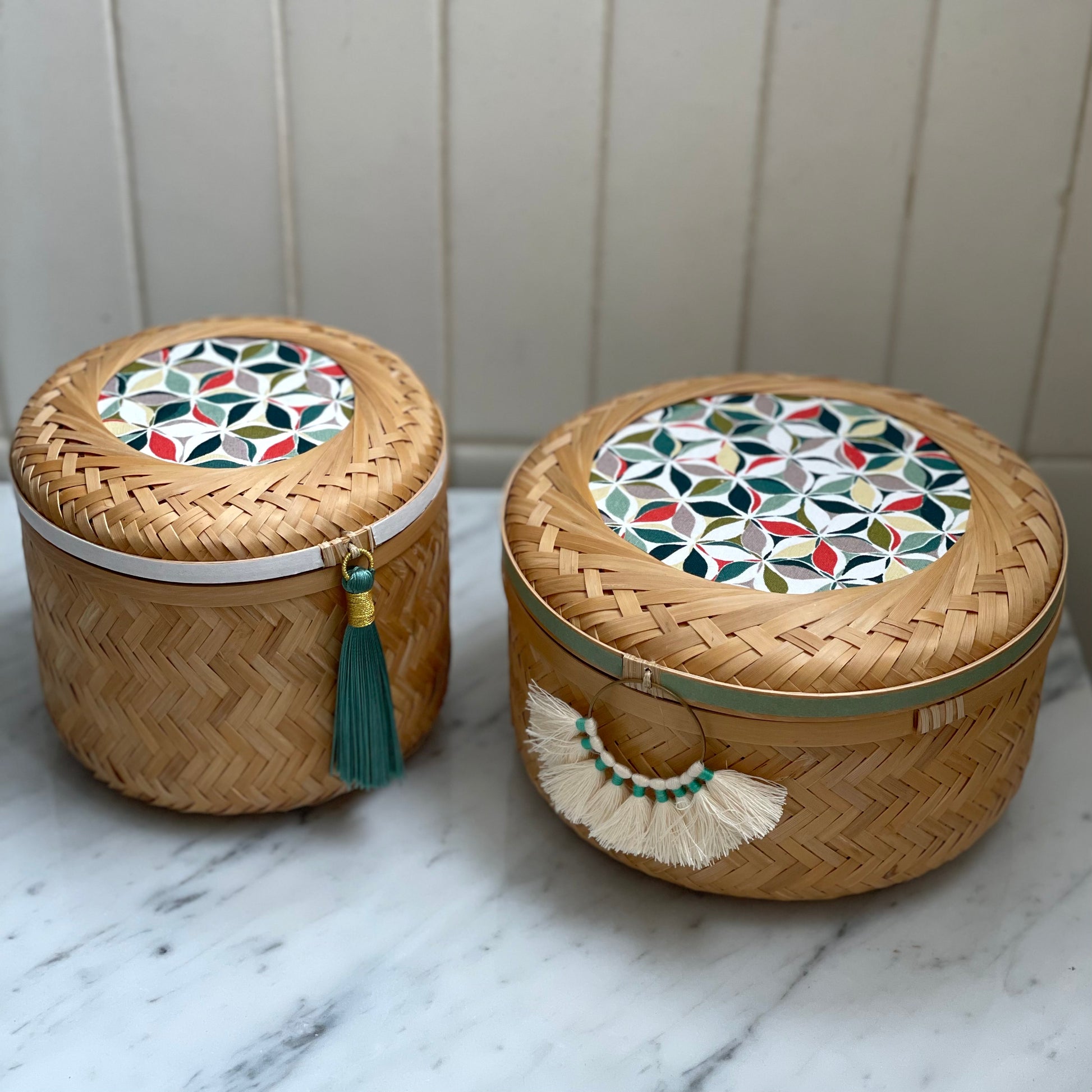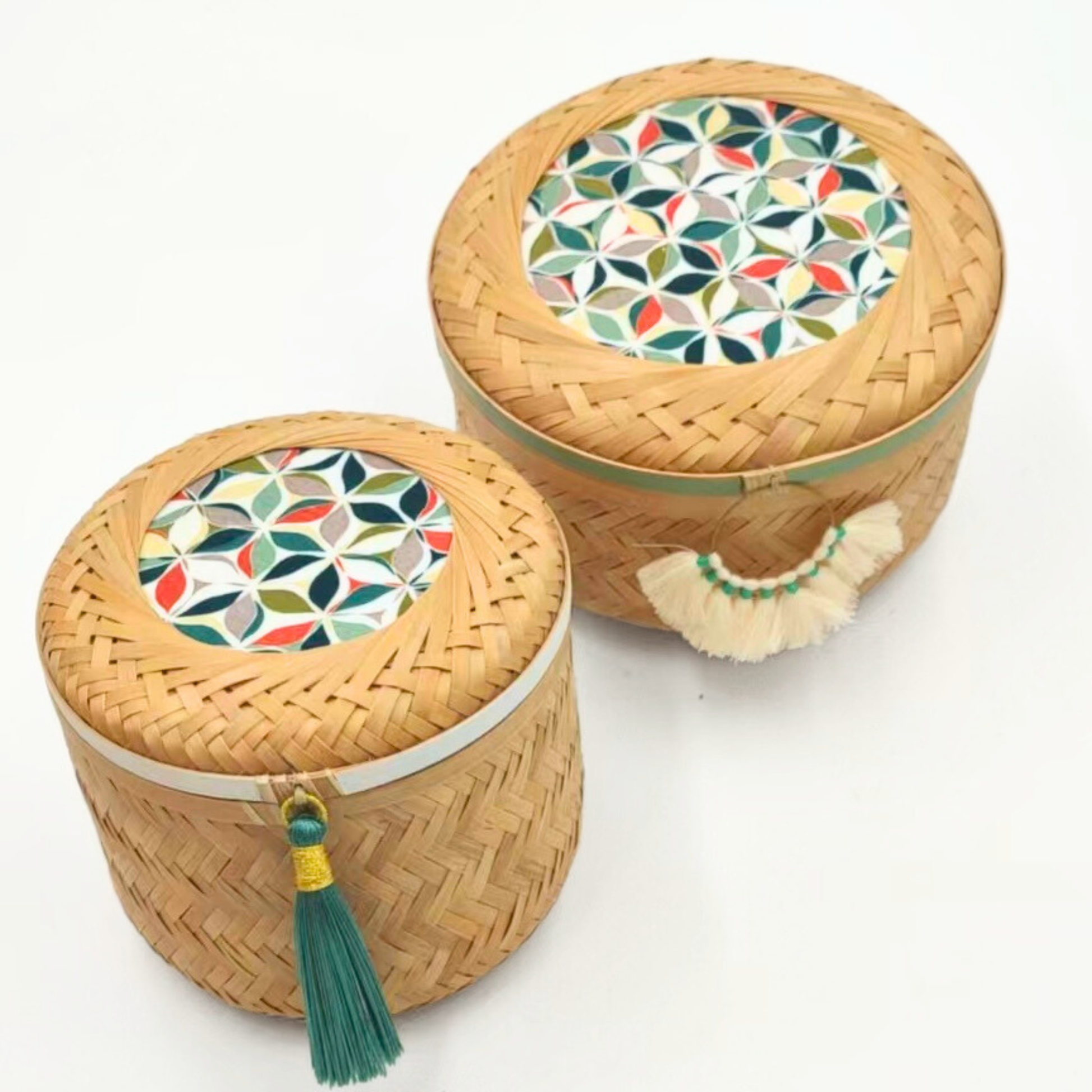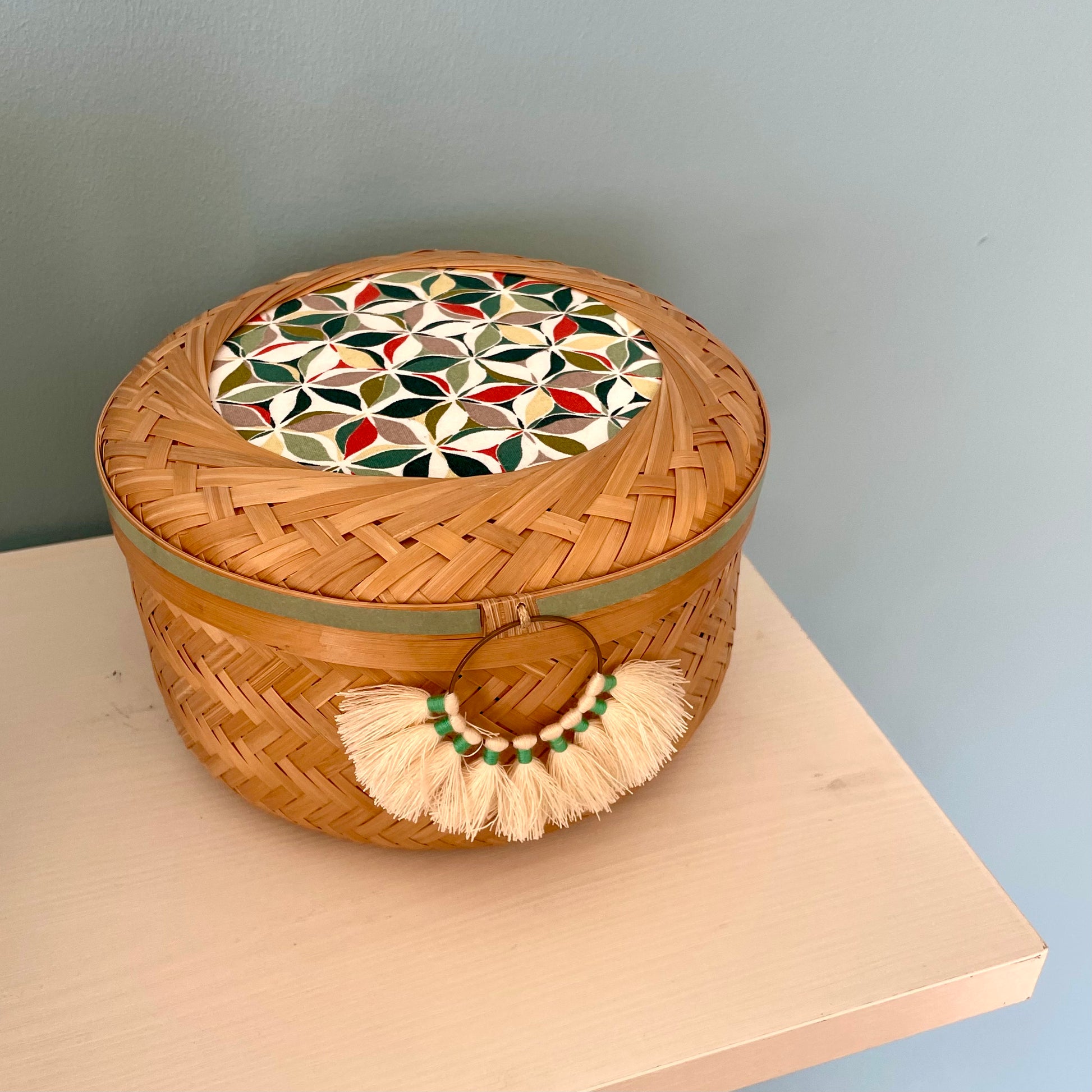 This cylindrical bamboo basket combines natural texture with modern style, elevated by a unique & charming tassel. Just the right size for essential oils or wrapped snacks, it keeps your essentials organized while adding a refined touch to your space.