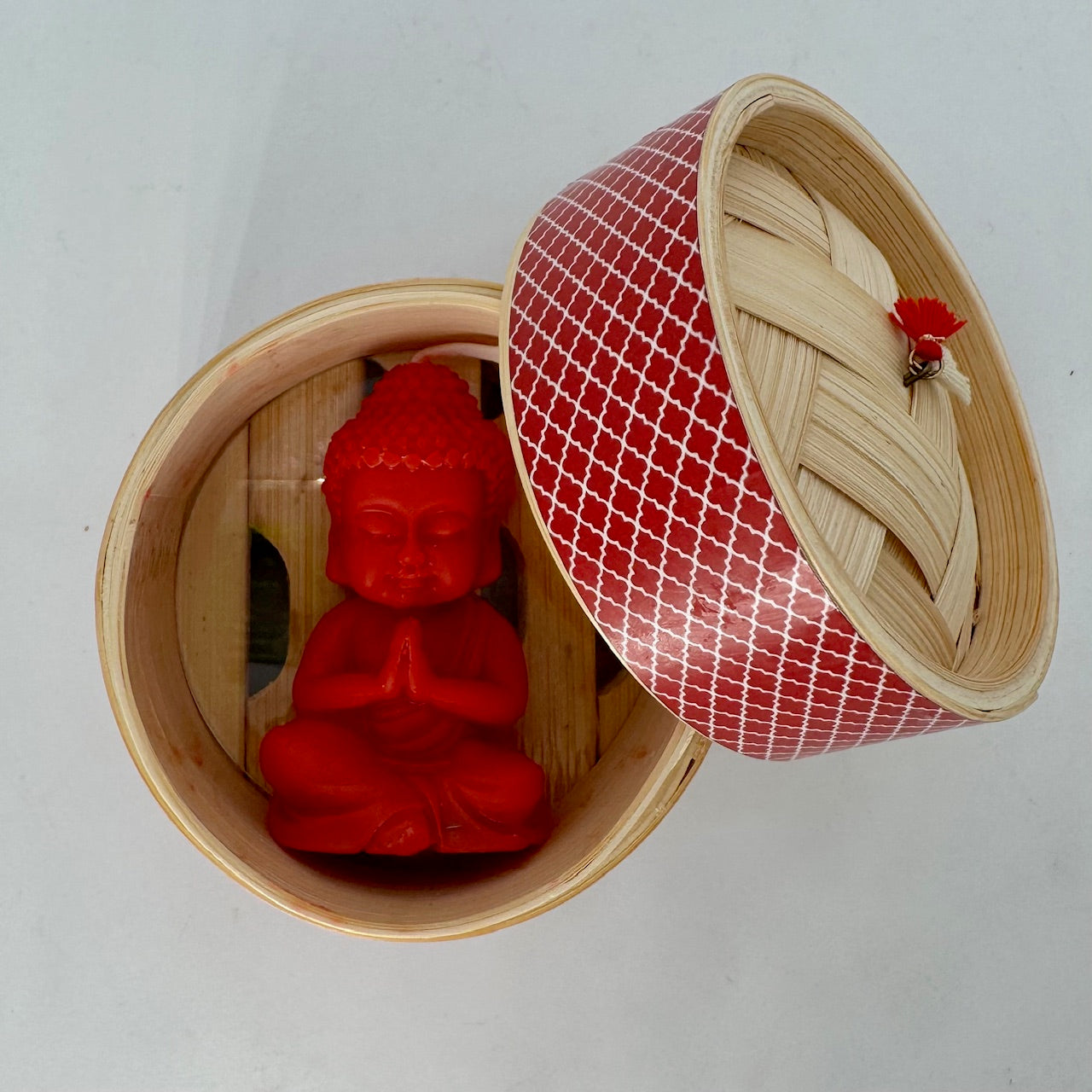 Perfect for rings, hairpins, or even a little surprise, this miniature bamboo steamer makes a delightful gift — on its own or paired with one of our signature soaps, candles, or jewelry pieces. Beautifully covered in patterned washi-style paper and accented with delicate miniature tassels, each piece includes a lid, basket, and a clear acrylic insert to keep small items secure — blending beauty, culture, and function in one compact design.