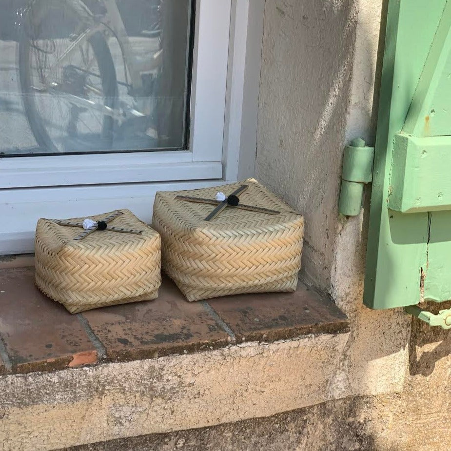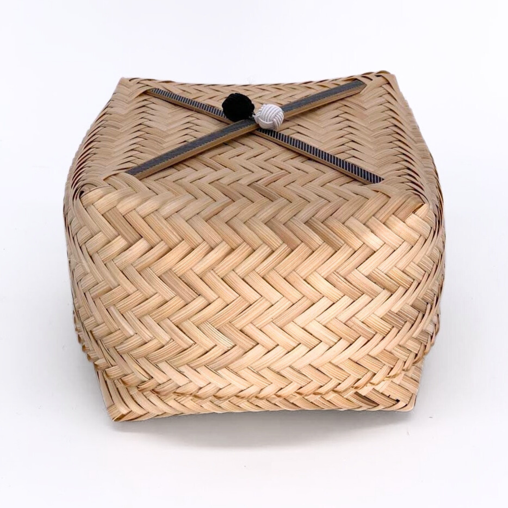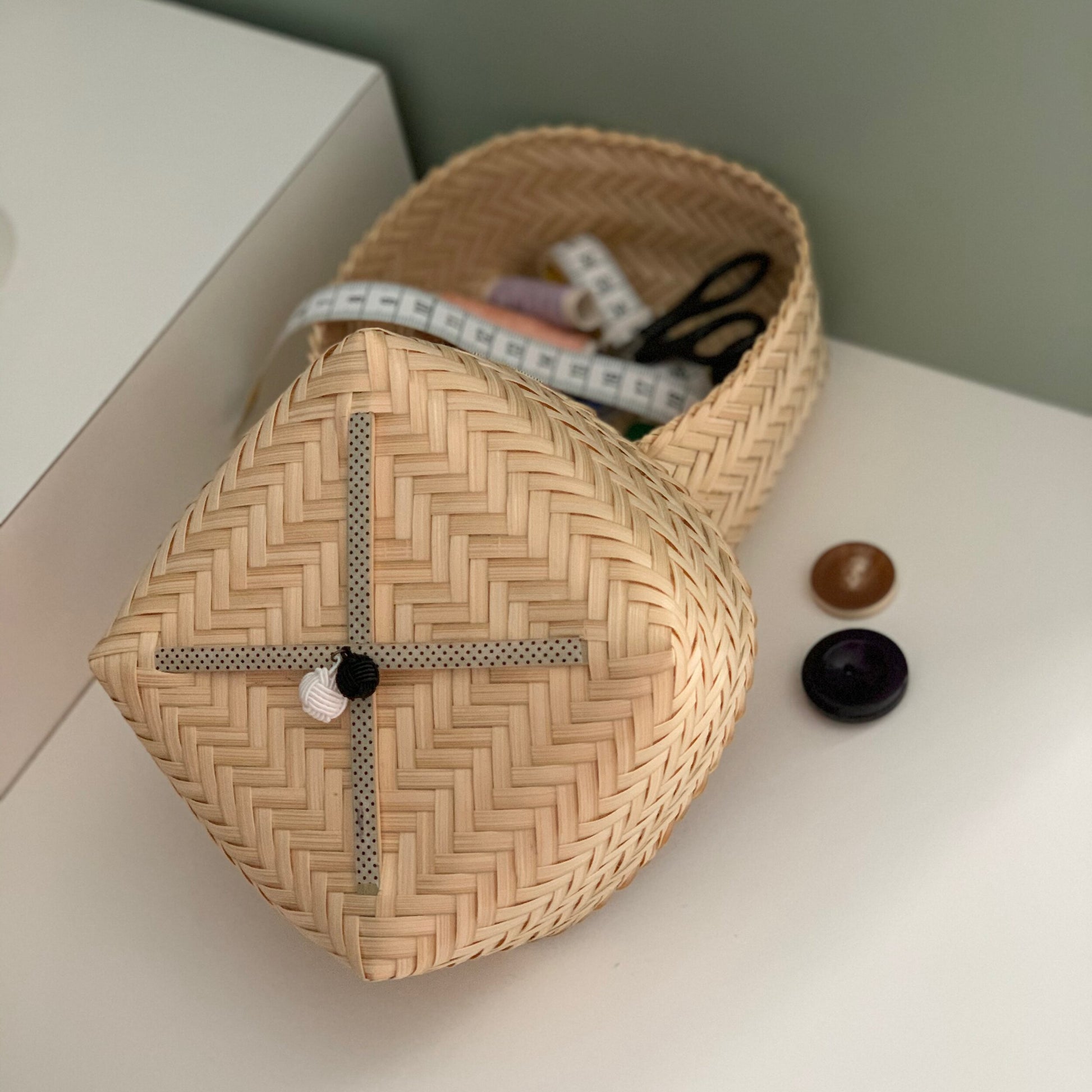 The eco-friendly bamboo weave exudes warmth, while the black-and-white design adds a sense of simplicity and refinement. Decorative washi tape accents and traditional Chinese knots embellish the lid, bringing a distinctive oriental touch. Perfect for storing office essentials, sewing supplies, or small keepsakes.