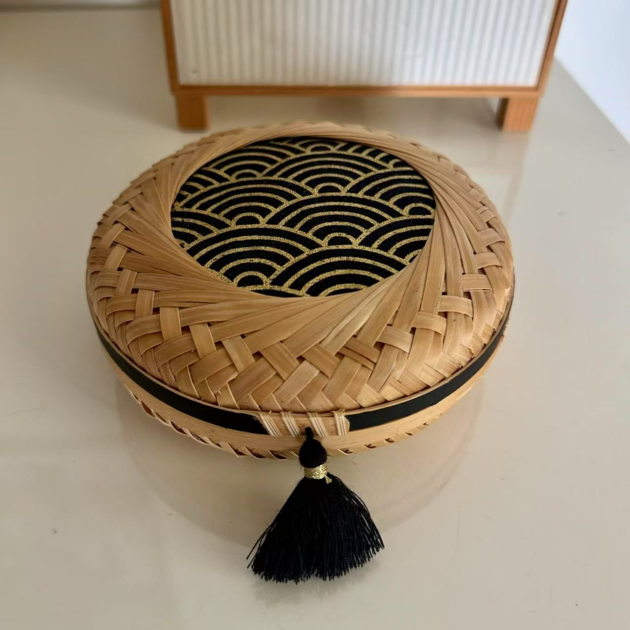 Composition: Bamboo, cotton fabric, washi tape, polyester tassel
