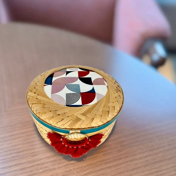 Composition: Bamboo, cotton fabric, washi tape, polyester tassel