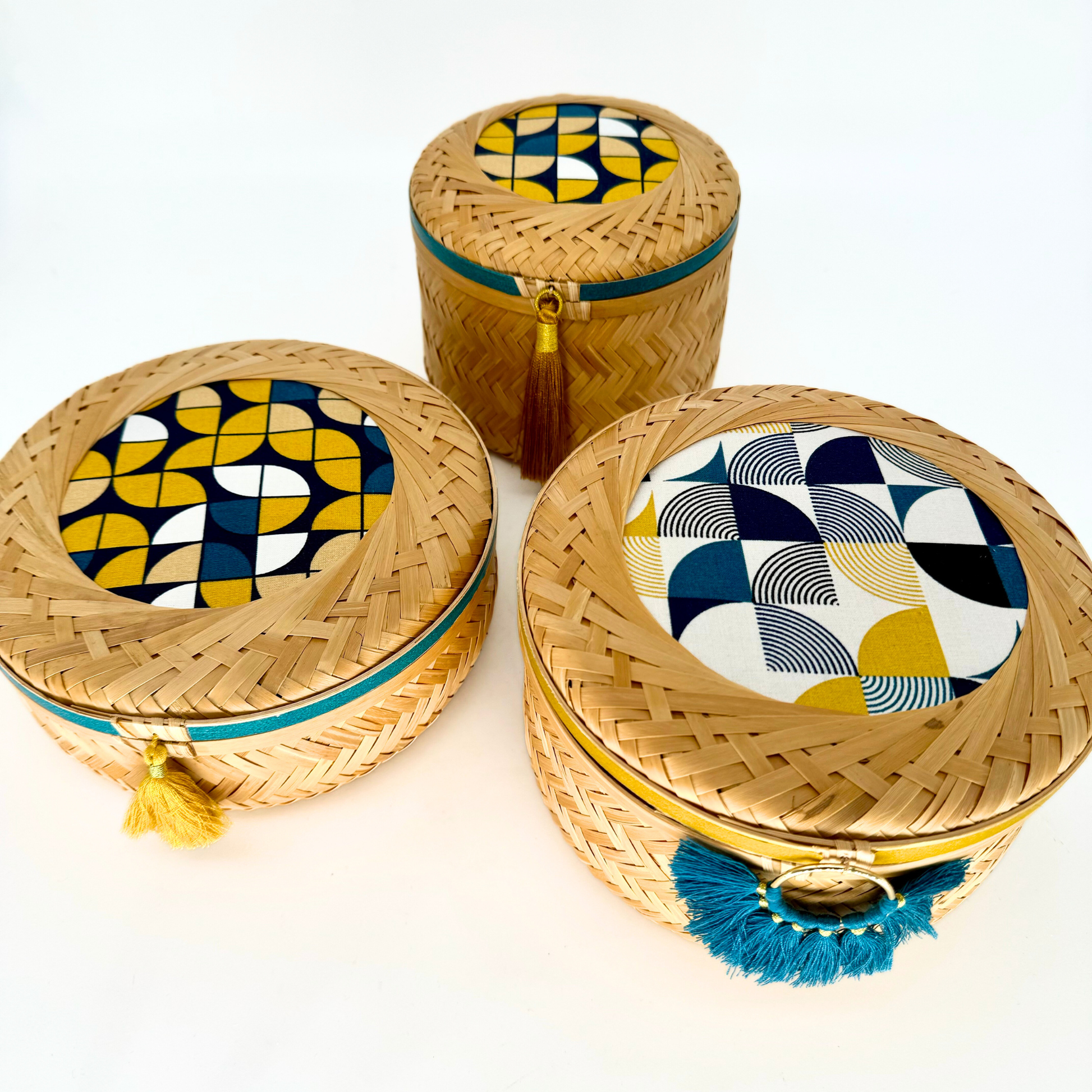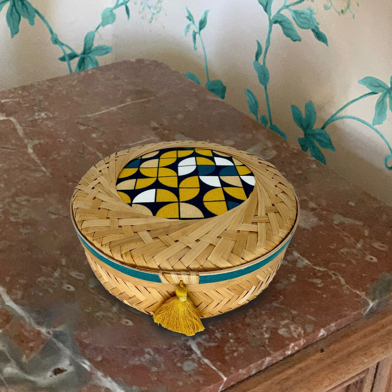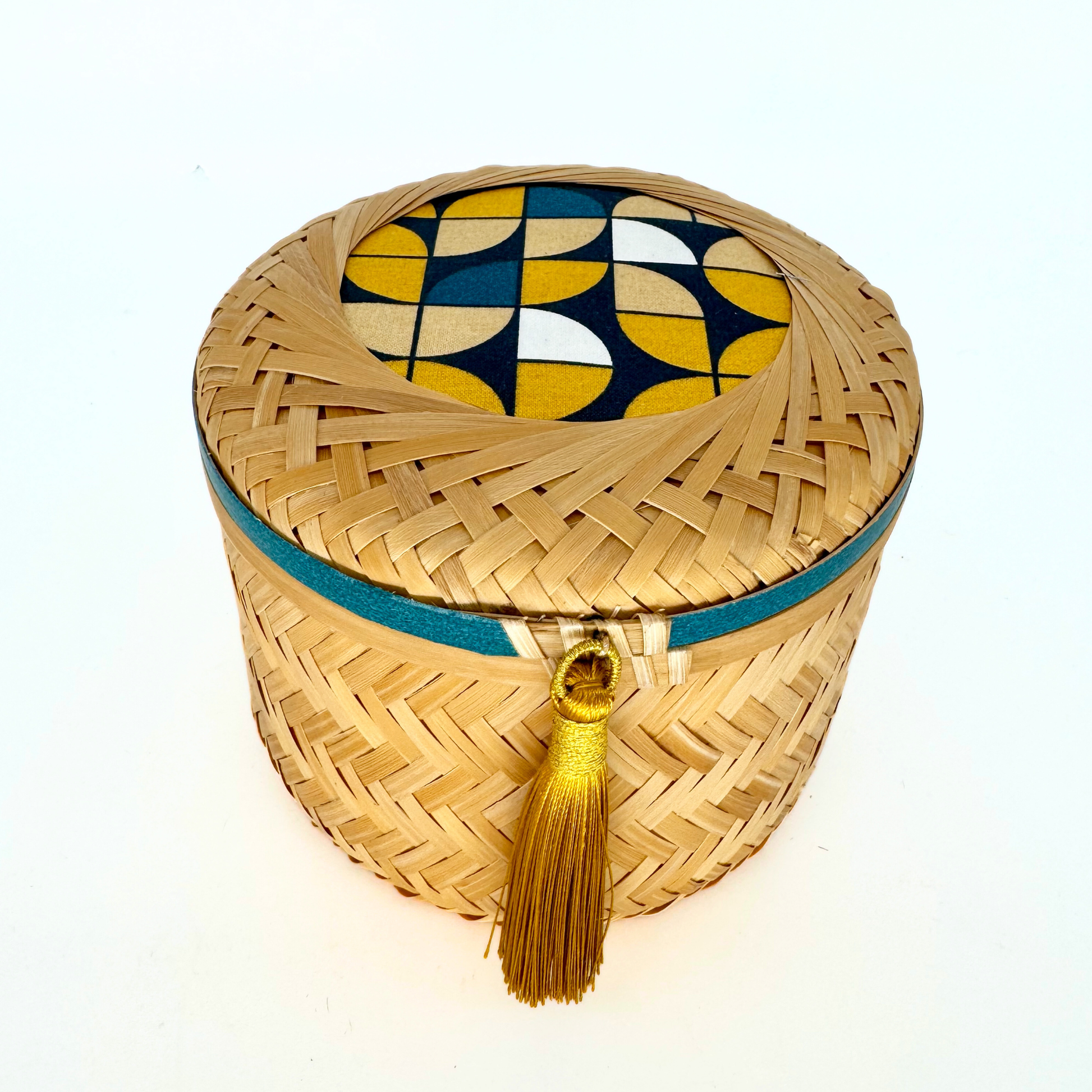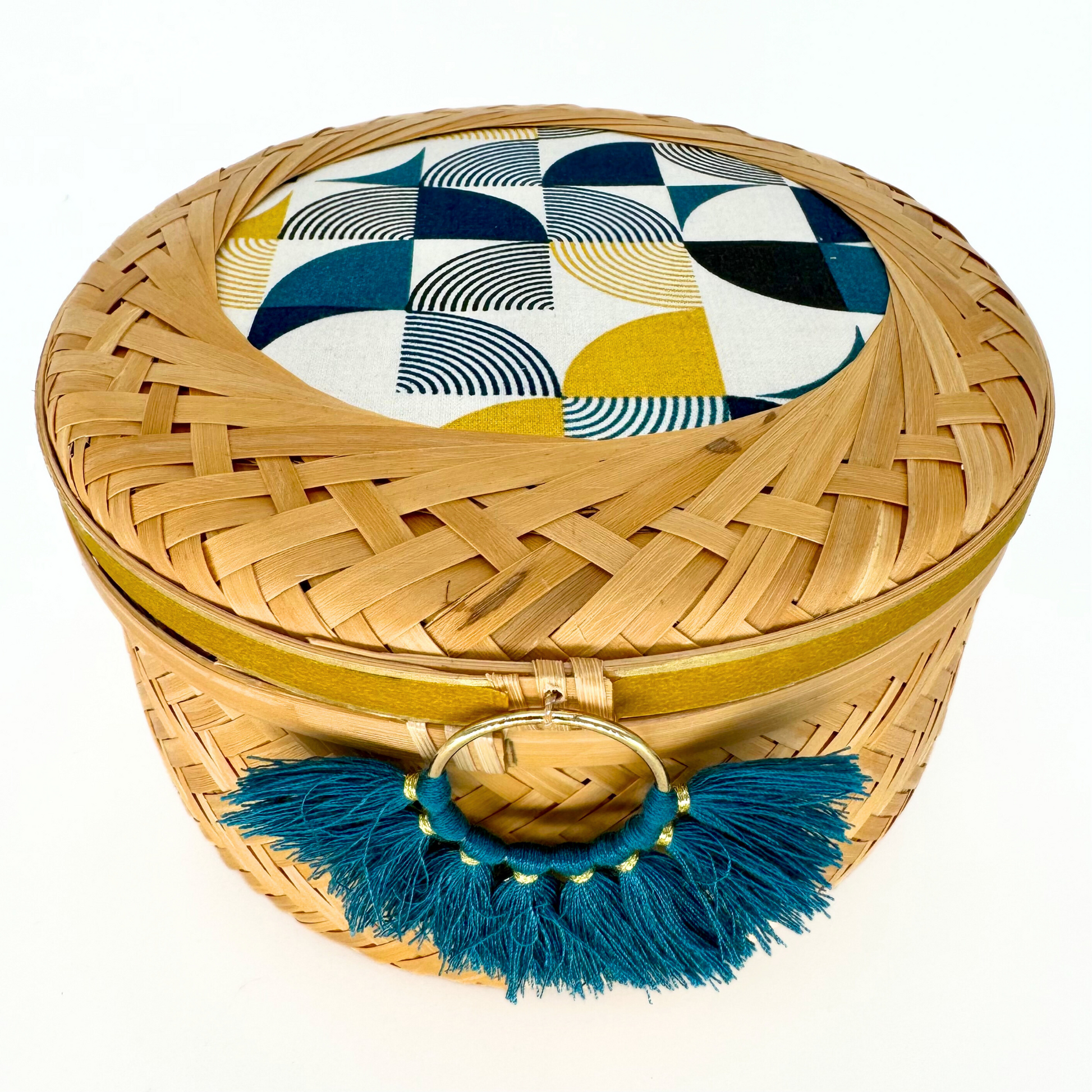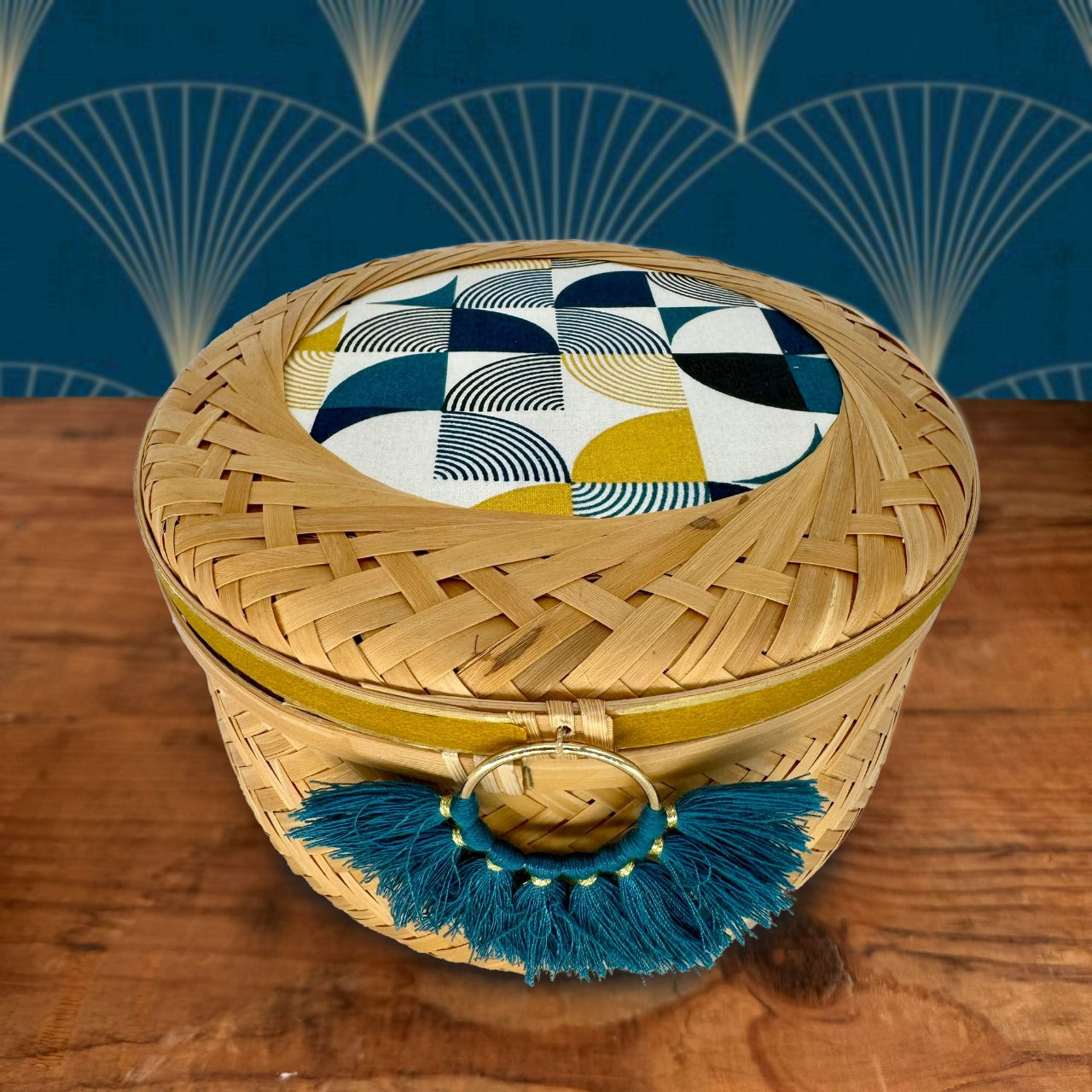This cylindrical bamboo basket combines natural texture with modern style, elevated by a unique & charming tassel. Just the right size for essential oils or wrapped snacks, it keeps your essentials organized while adding a refined touch to your space.